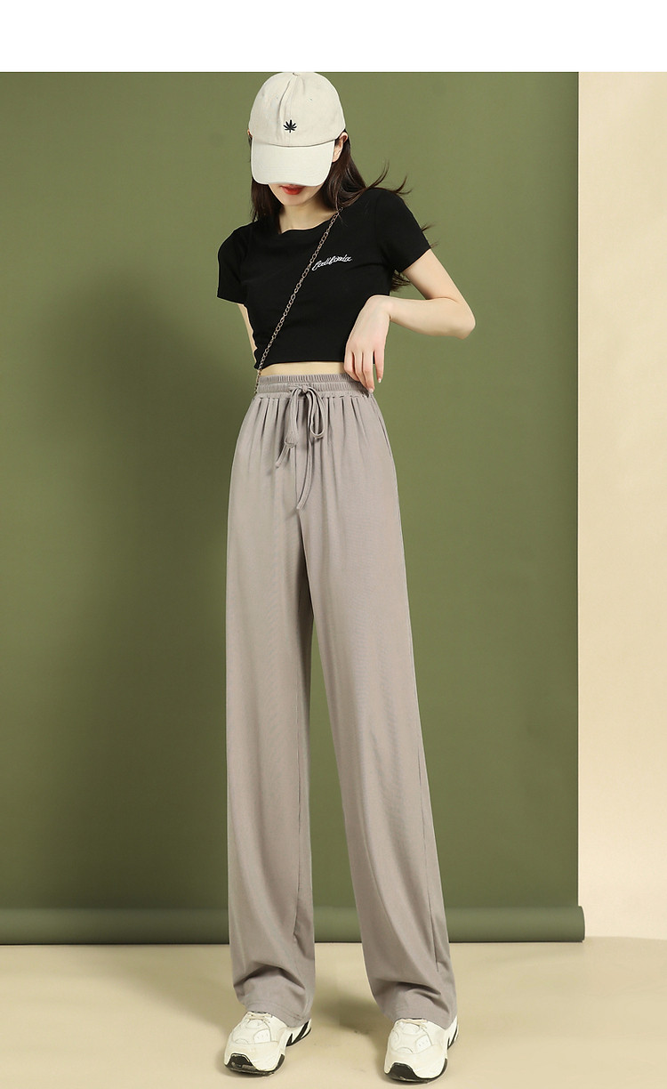 商品名称:【冰丝阔腿裤】夏季橡筋腰爽滑裤子女直筒女式休闲裤 767809