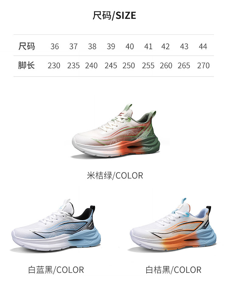 商品名称:【渐变色】春夏时尚透气网鞋轻便跑步鞋体测减震运动休闲男鞋 410000