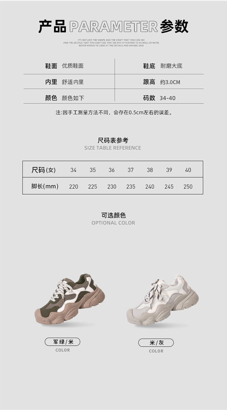 商品名称:老爹鞋女2025爆款夏季网面透气厚底增高鞋子百搭运动休闲鞋女 470280