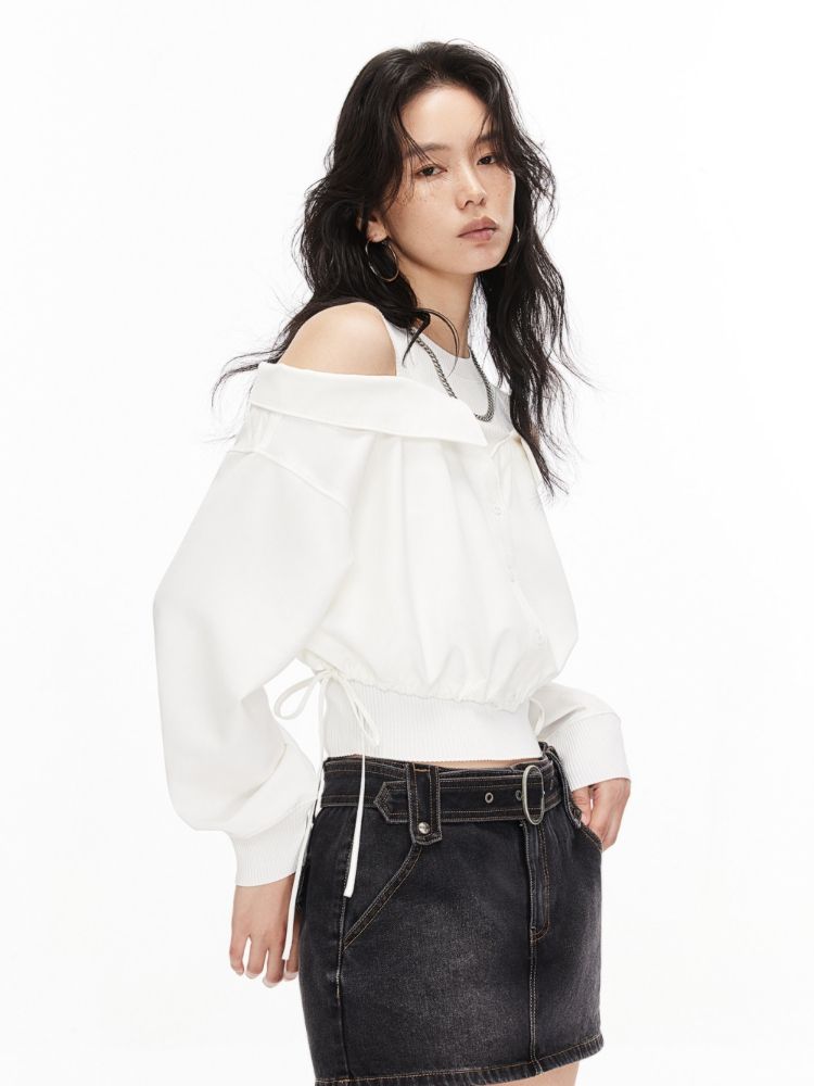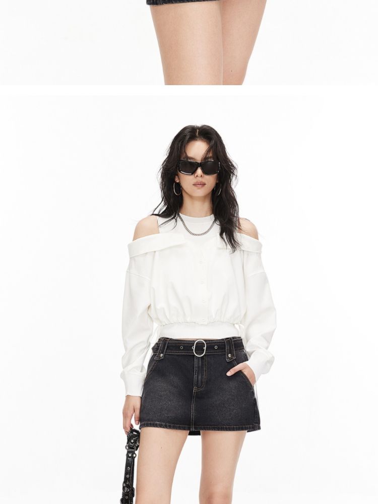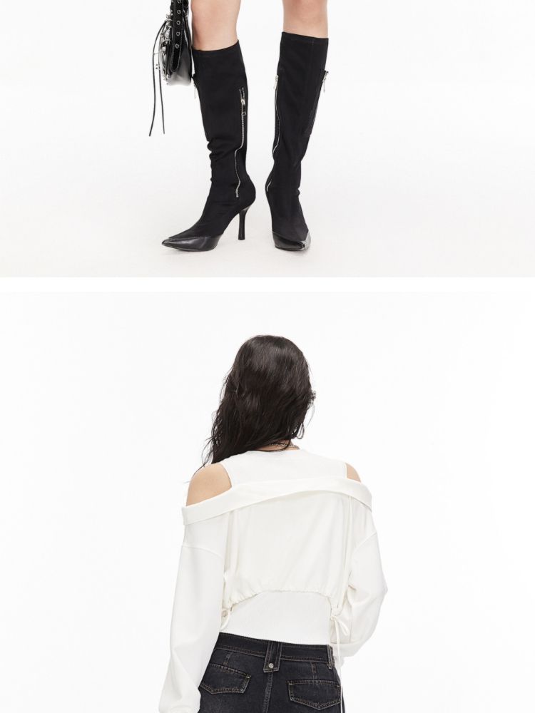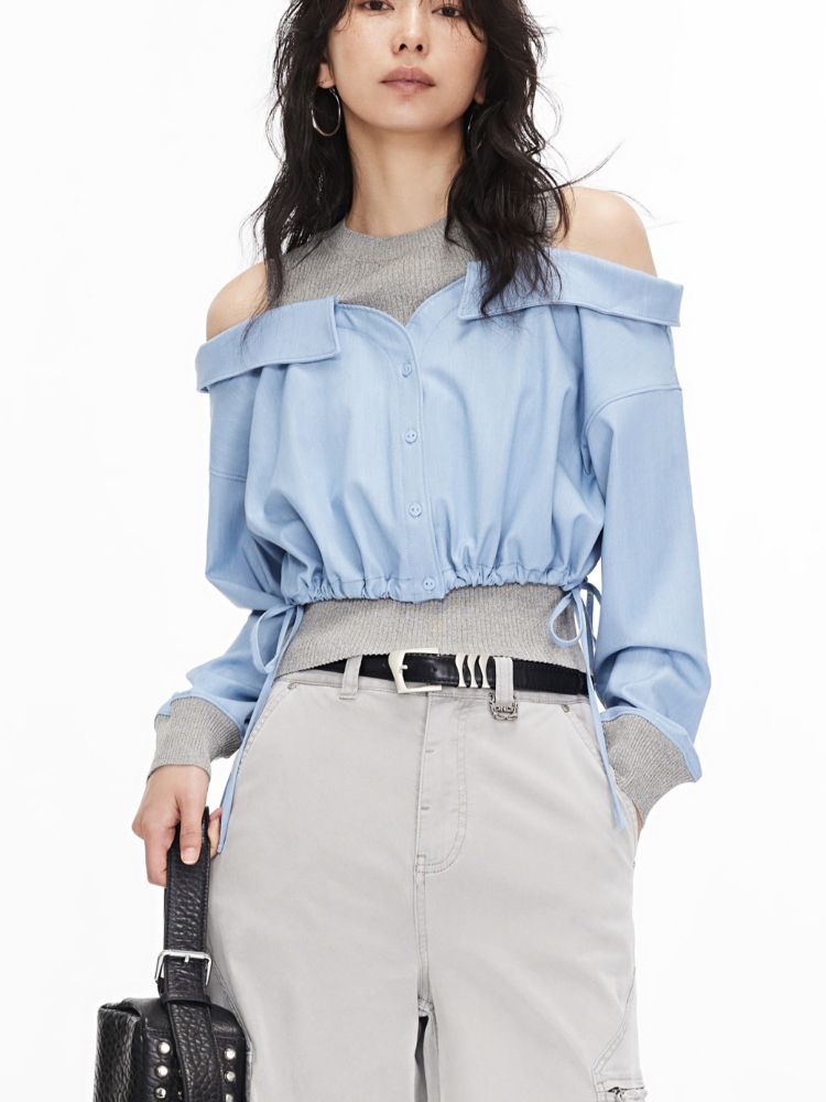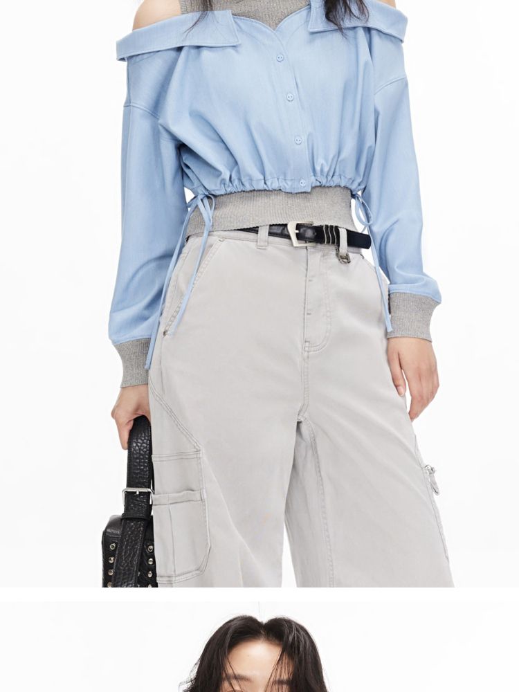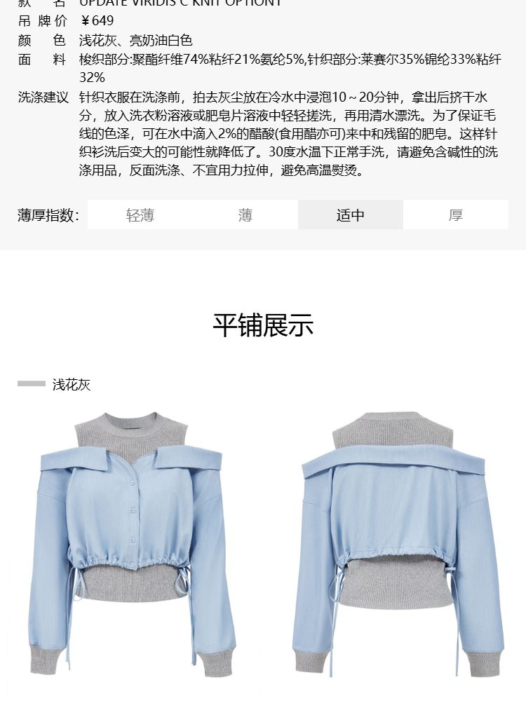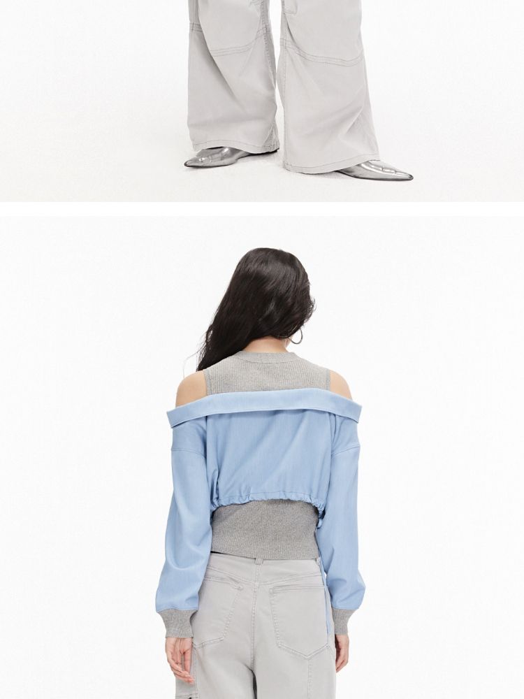 商品名称:【假两件针织衫】2025夏季针织拼接设计时髦露肩假两件女 685722
