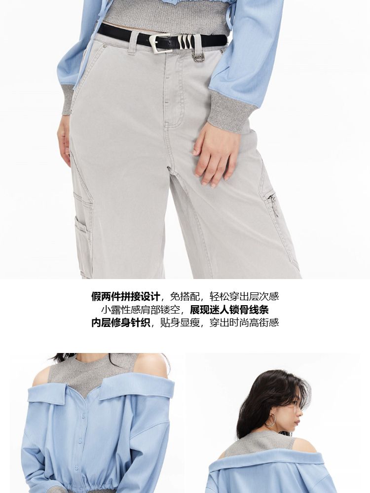 【假两件针织衫】2025夏季针织拼接设计时髦露肩假两件女 685722