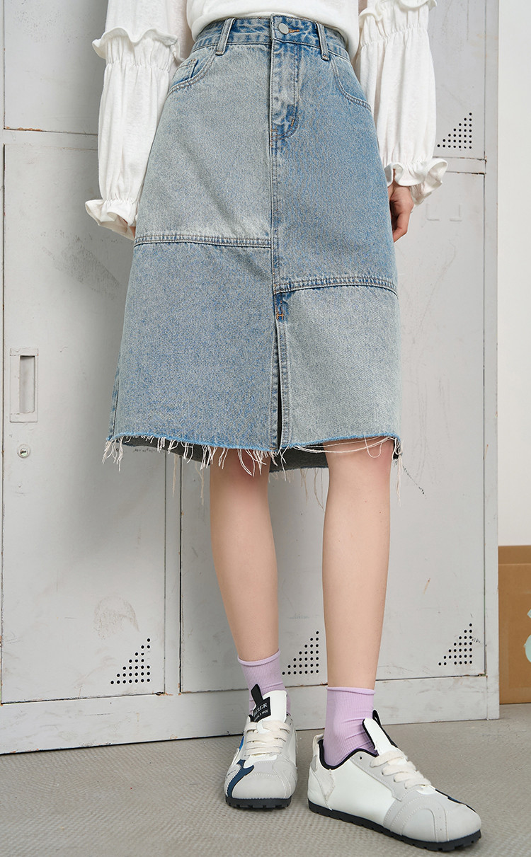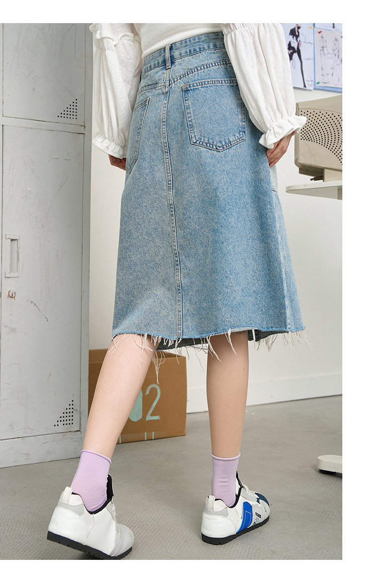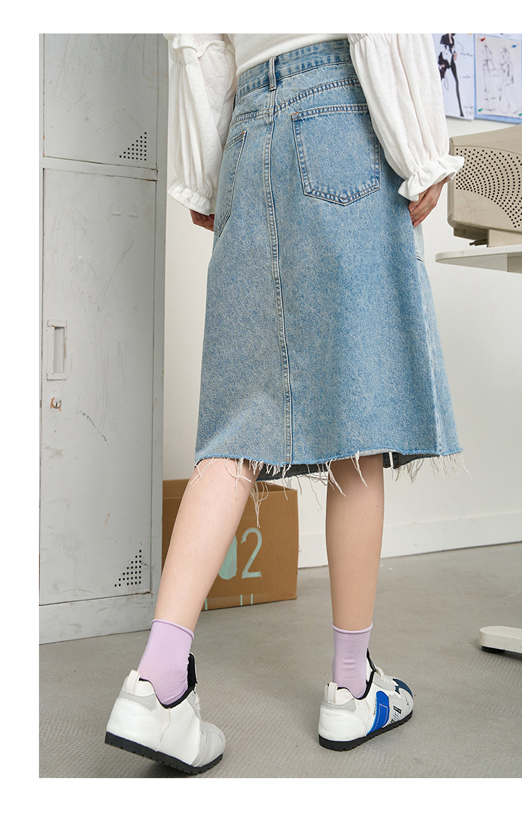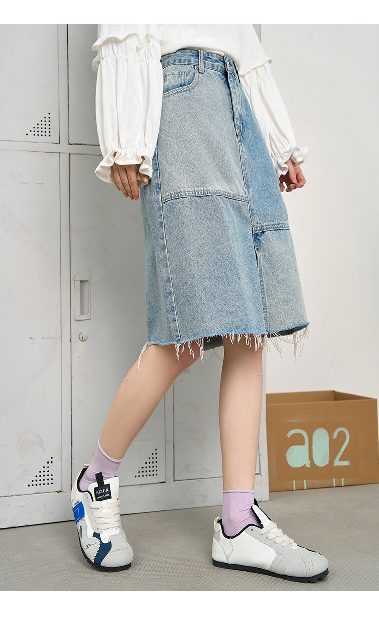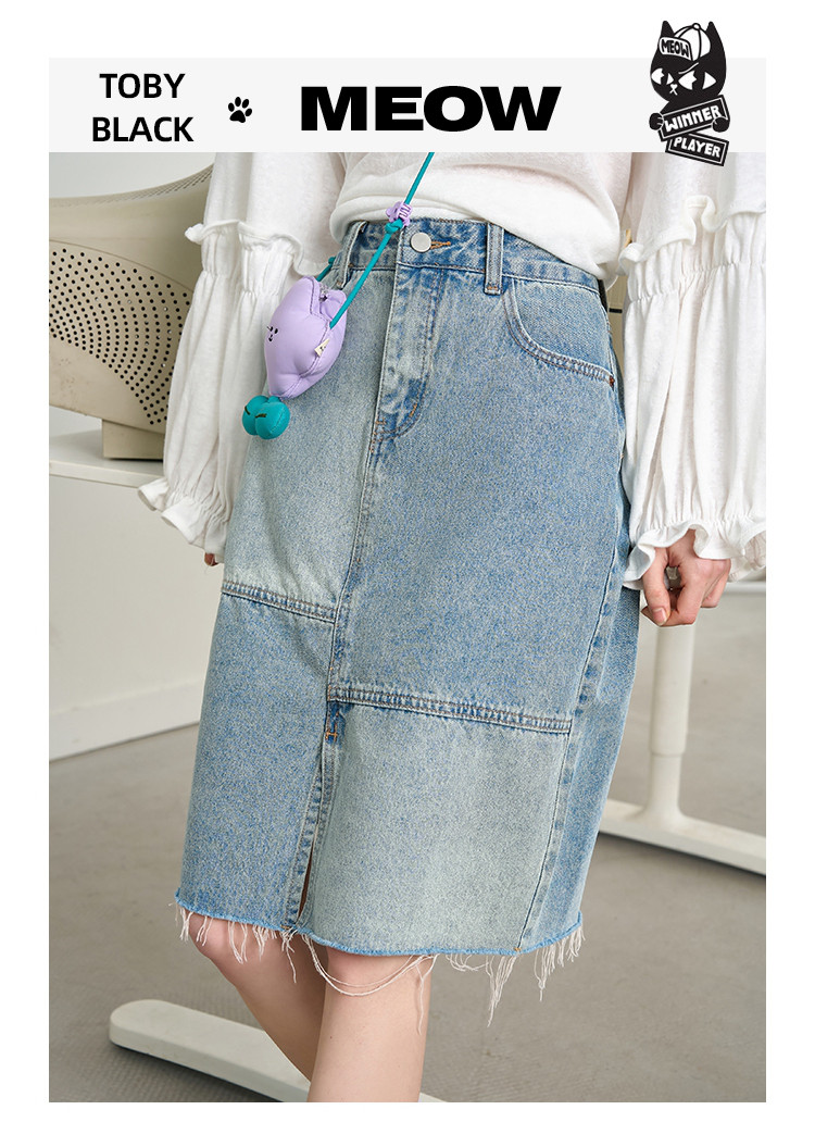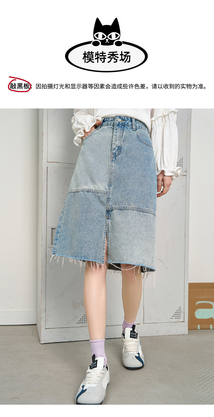 商品名称:做旧风不规则鱼尾牛仔五分A字裙2025夏季拼接休闲女式半截裙 120285
