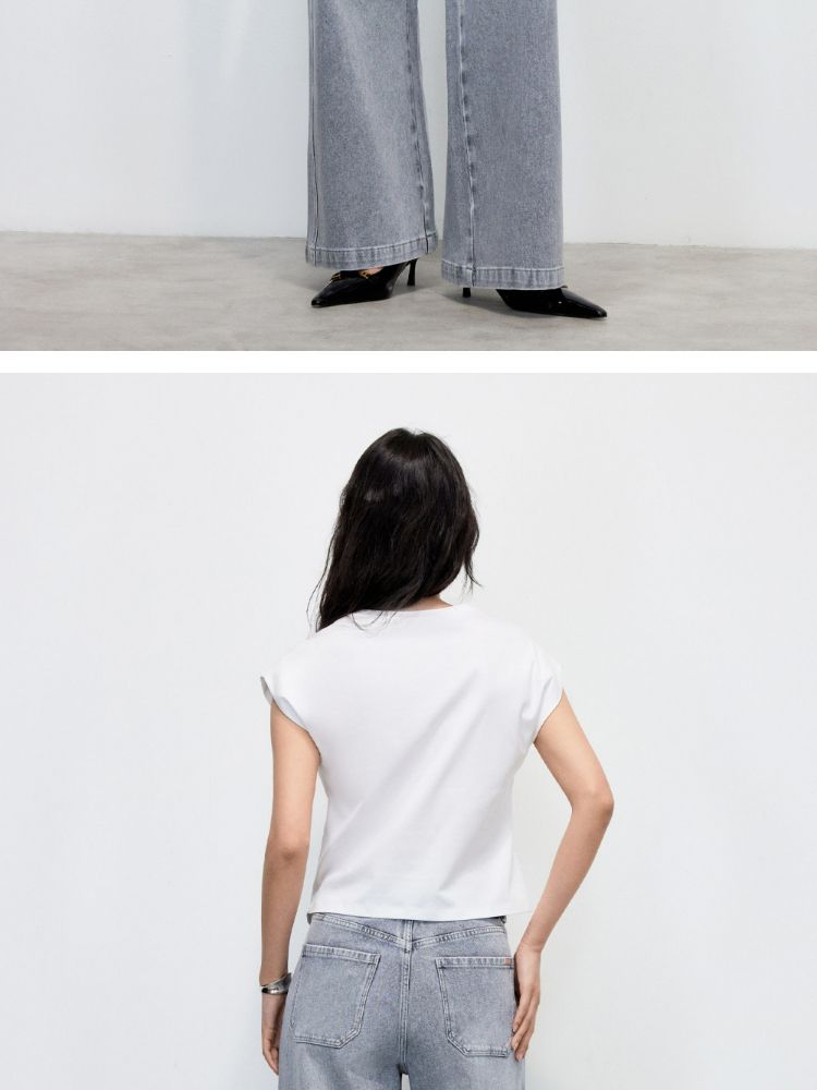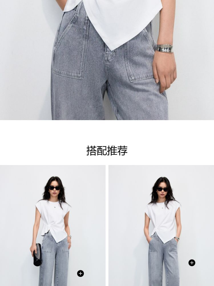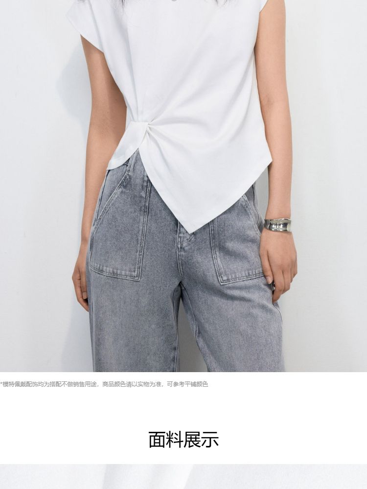 商品名称:【不规则捏褶】2025夏季柔软亲肤宽肩袖圆领T恤女 371610