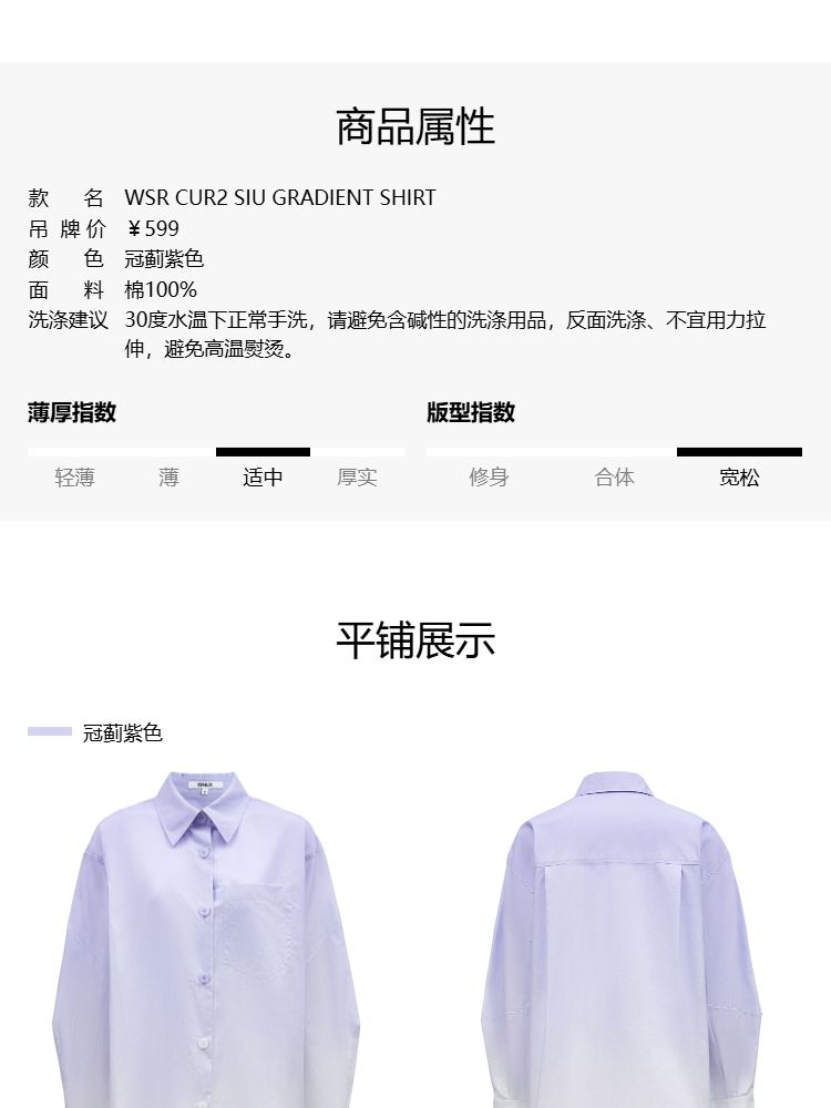 商品名称:【渐变设计】夏季男友风晕染宽松纯棉长袖衬衫女 993754