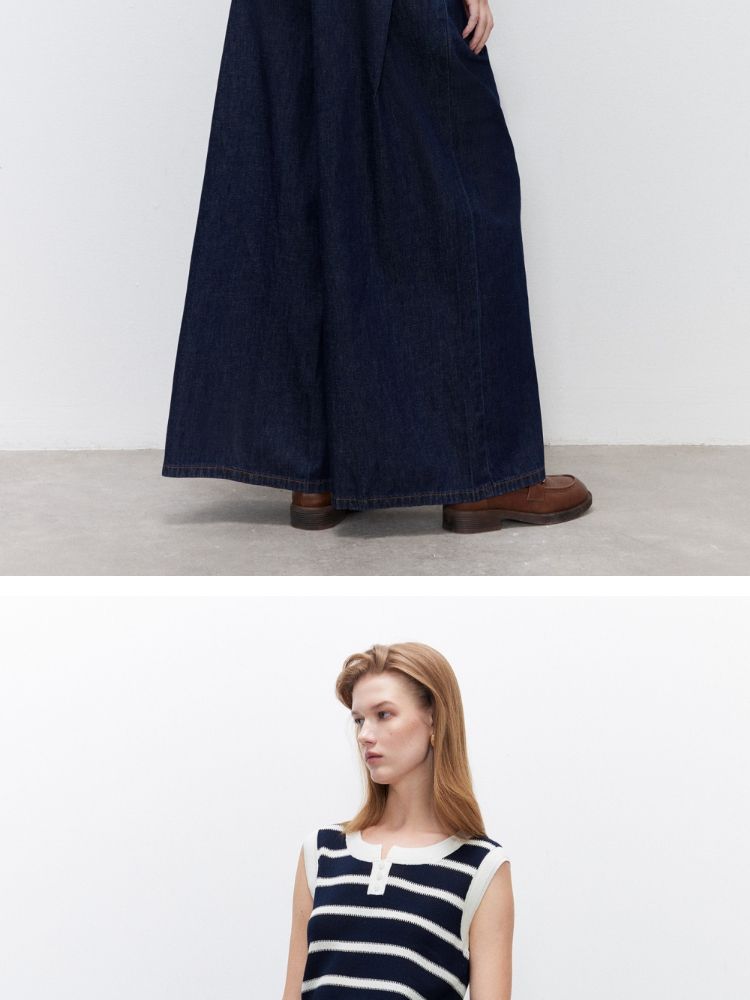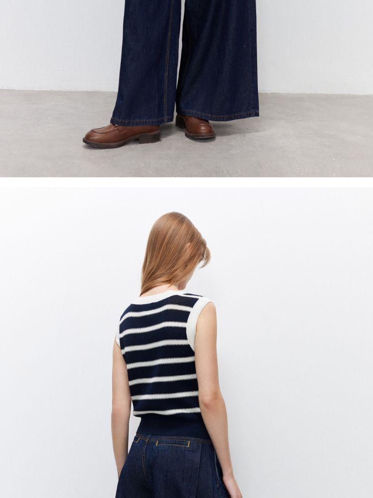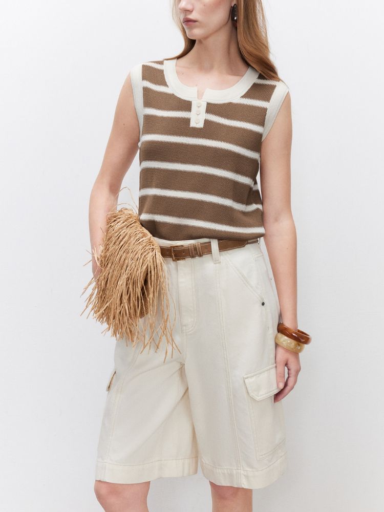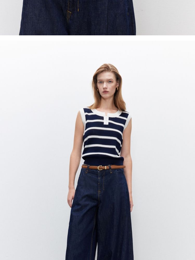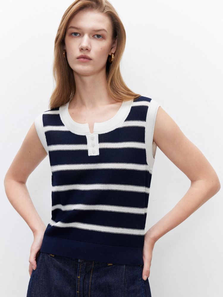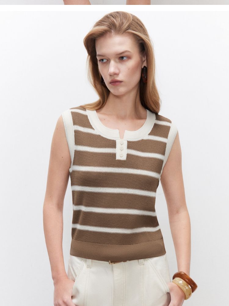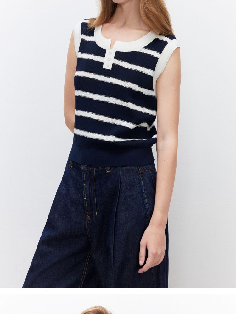 【圆领背心】2025夏季柔软亲肤经典条纹针织衫女 363162