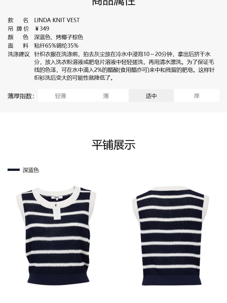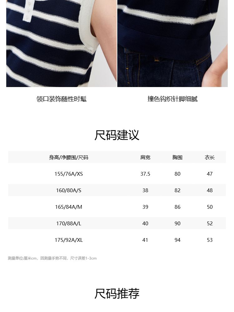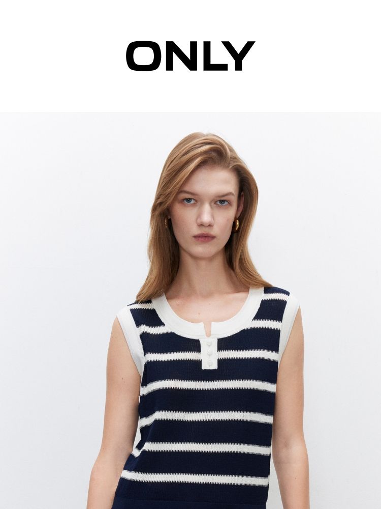 商品名称:【圆领背心】2025夏季柔软亲肤经典条纹针织衫女 363162