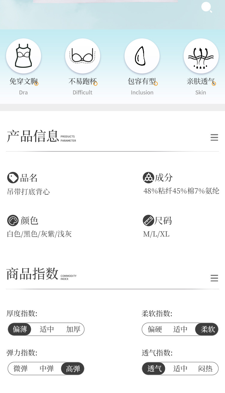 商品名称:【断码捡漏 固定一体式吊带】女士吊带背心女打底内搭吊带内衣女 553419