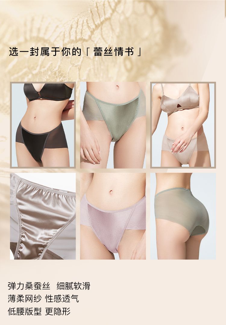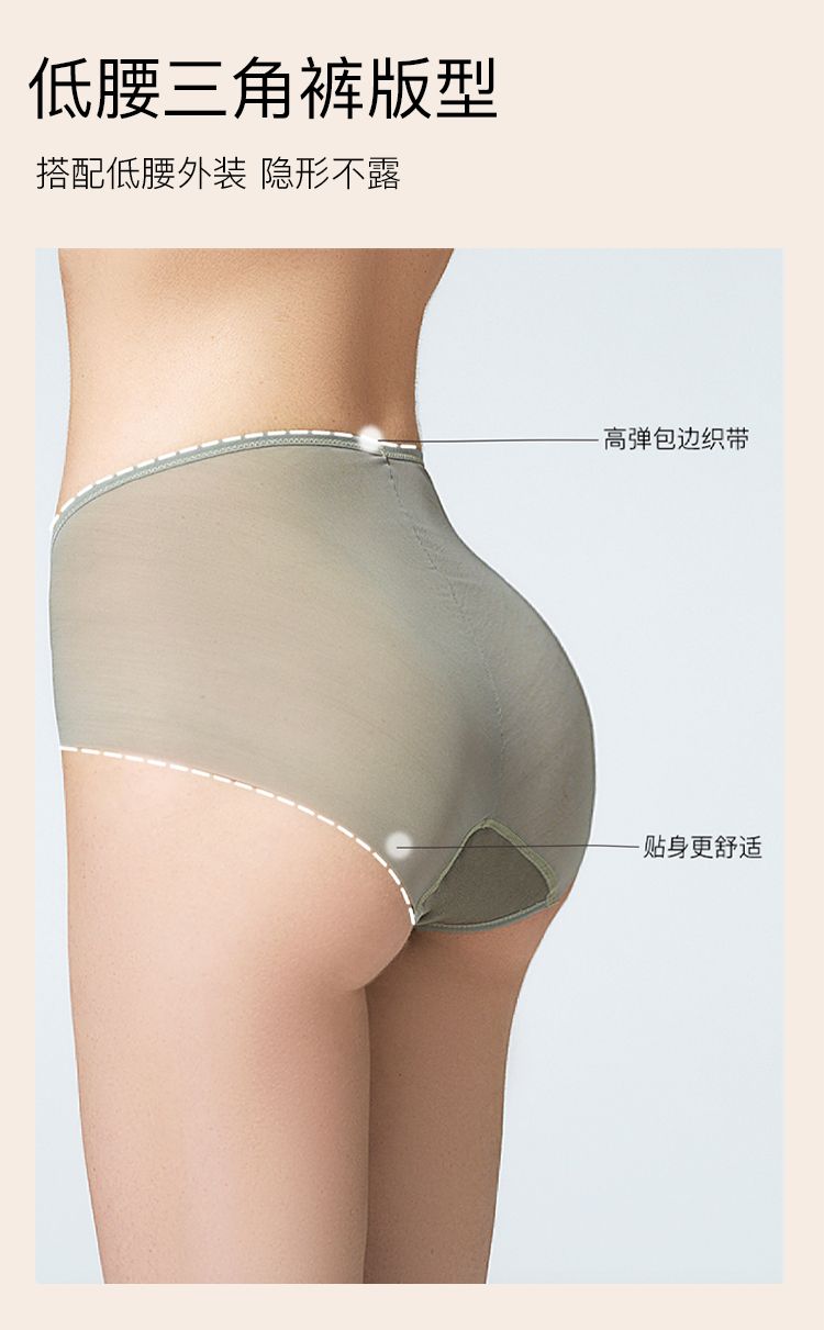 商品名称:【100%纯棉底档】新款桑蚕丝无痕网纱低腰三角裤不卷边内裤女 717056