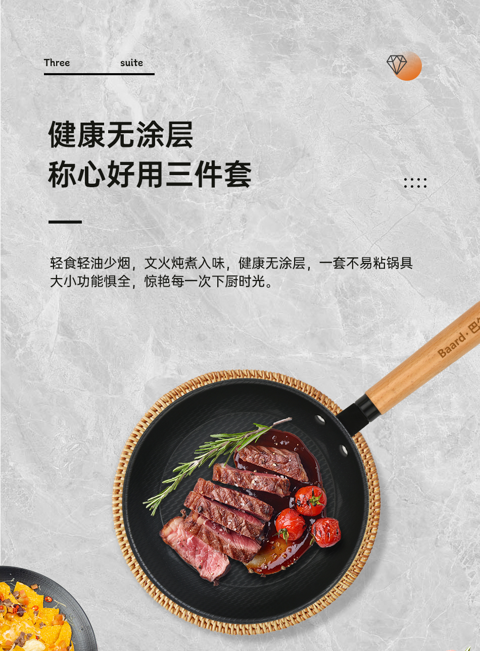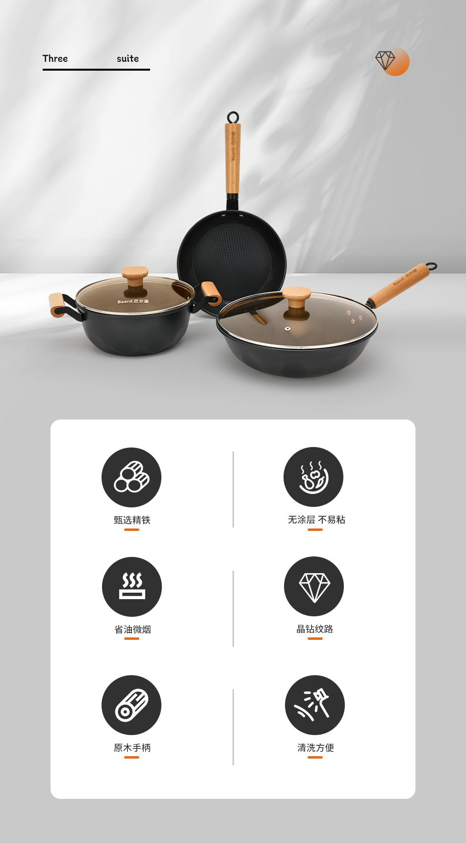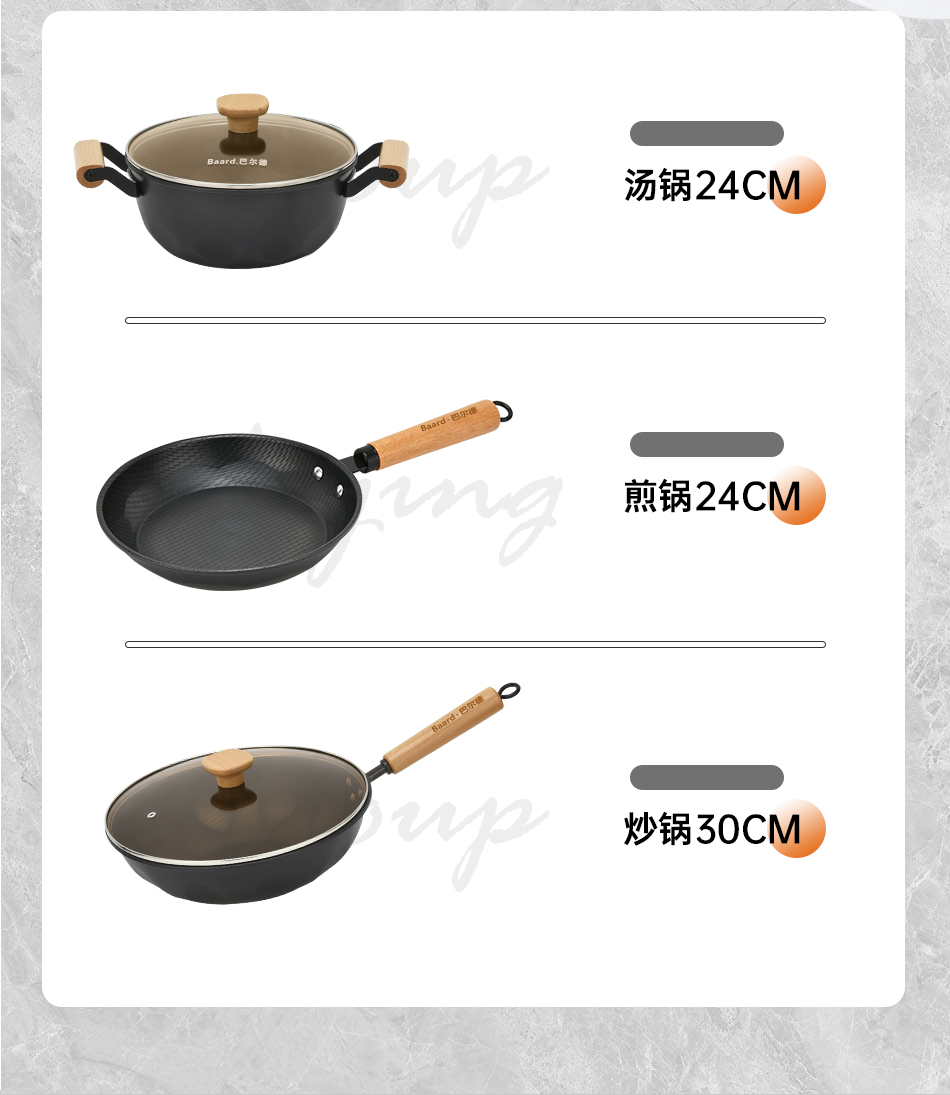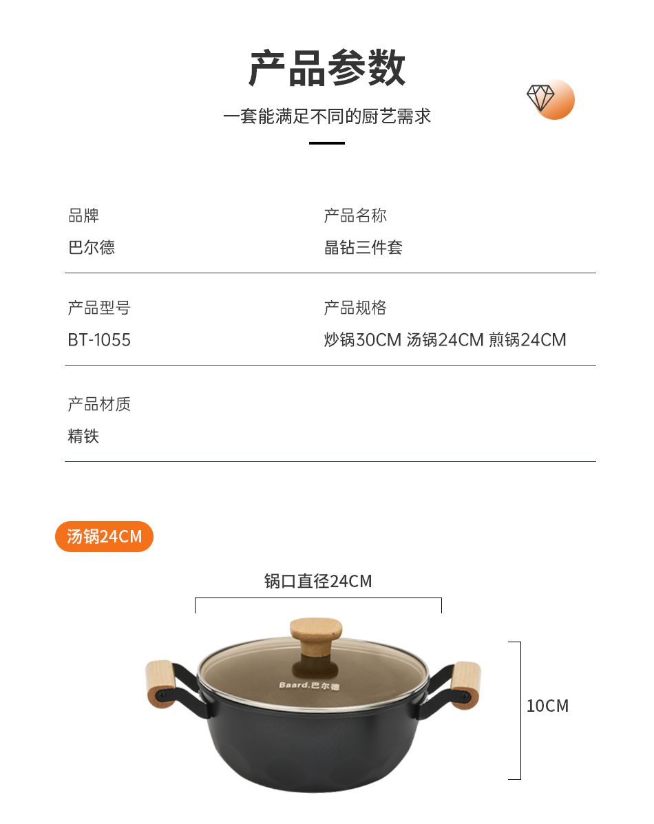 商品名称:TI-BRO/巴尔德晶钻锅具三件套BT-1055
