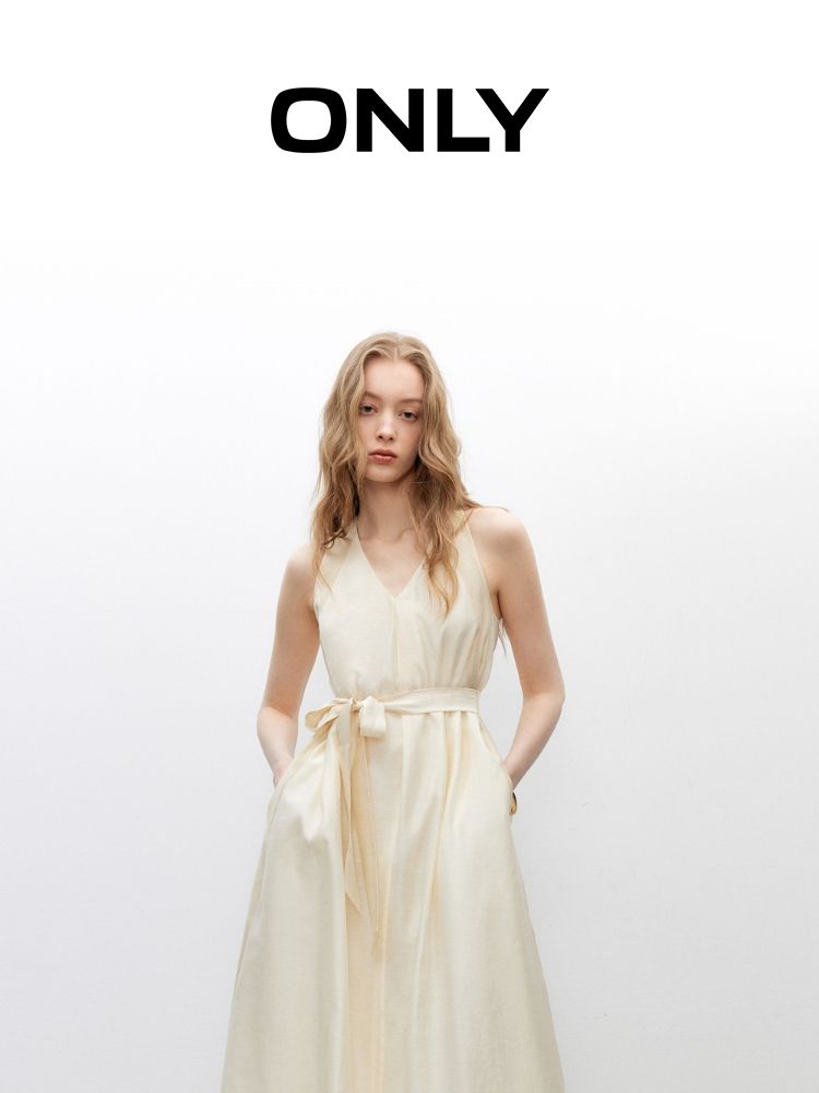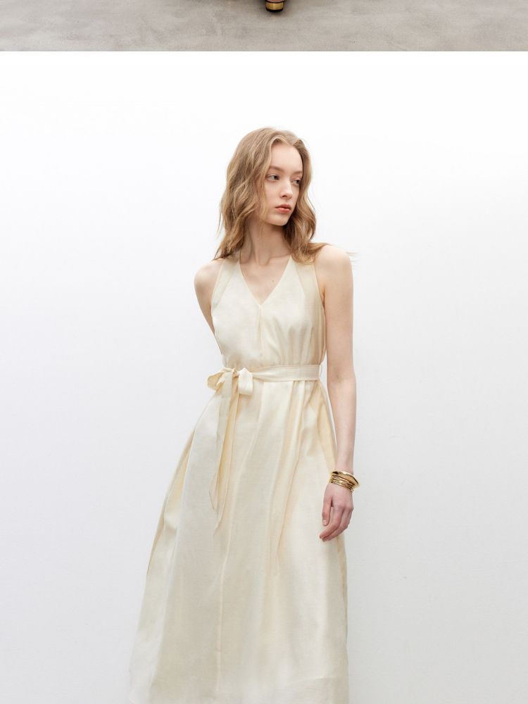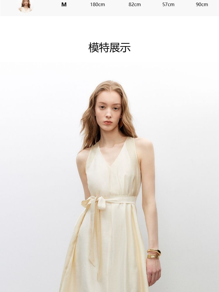 商品名称:【挂脖V领】2025夏季优雅浪漫收腰A字长裙连衣裙女 425946