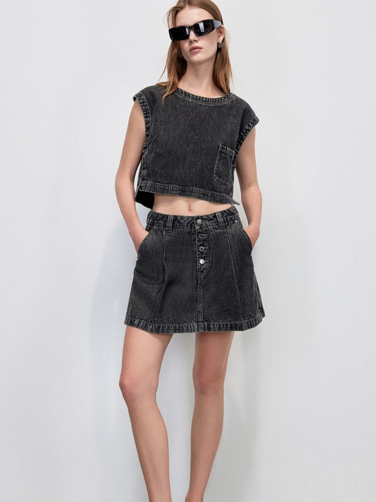 商品名称:【高腰4粒扣】25夏季含莱赛尔设计感A字短裤牛仔裤女 420762