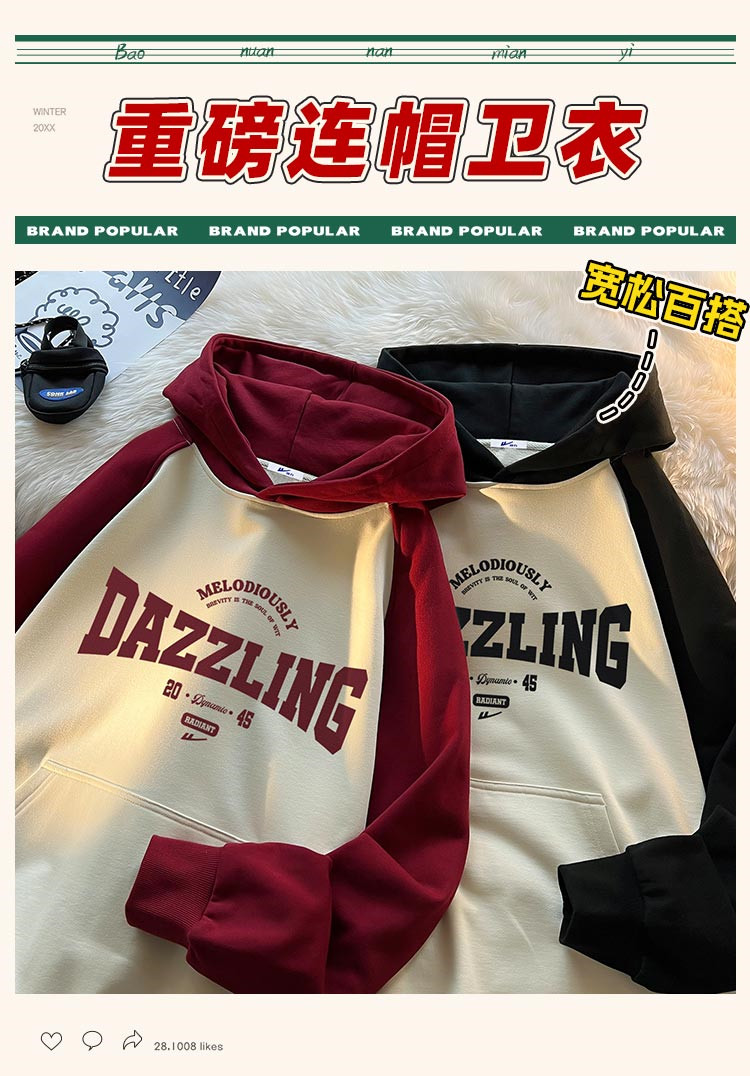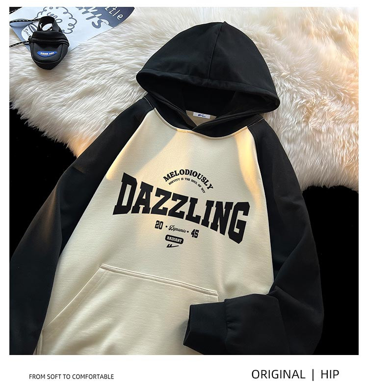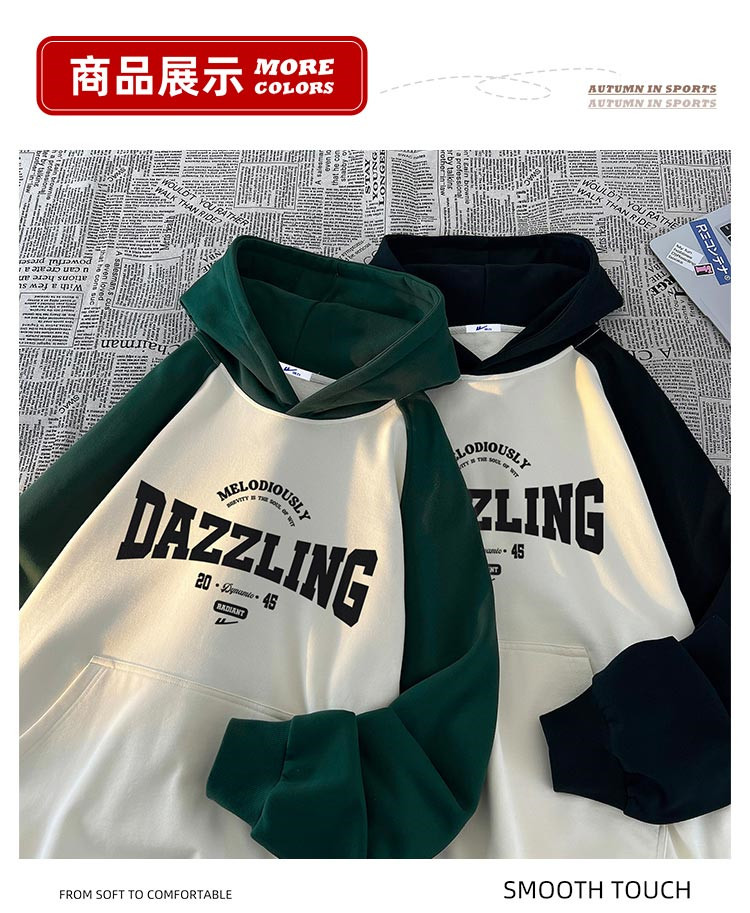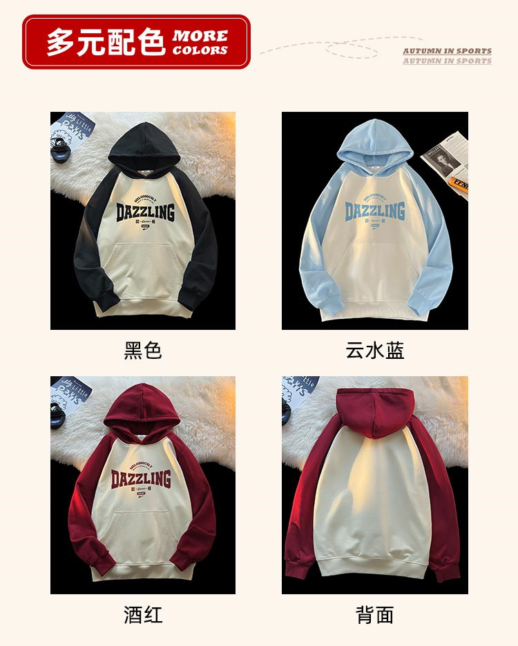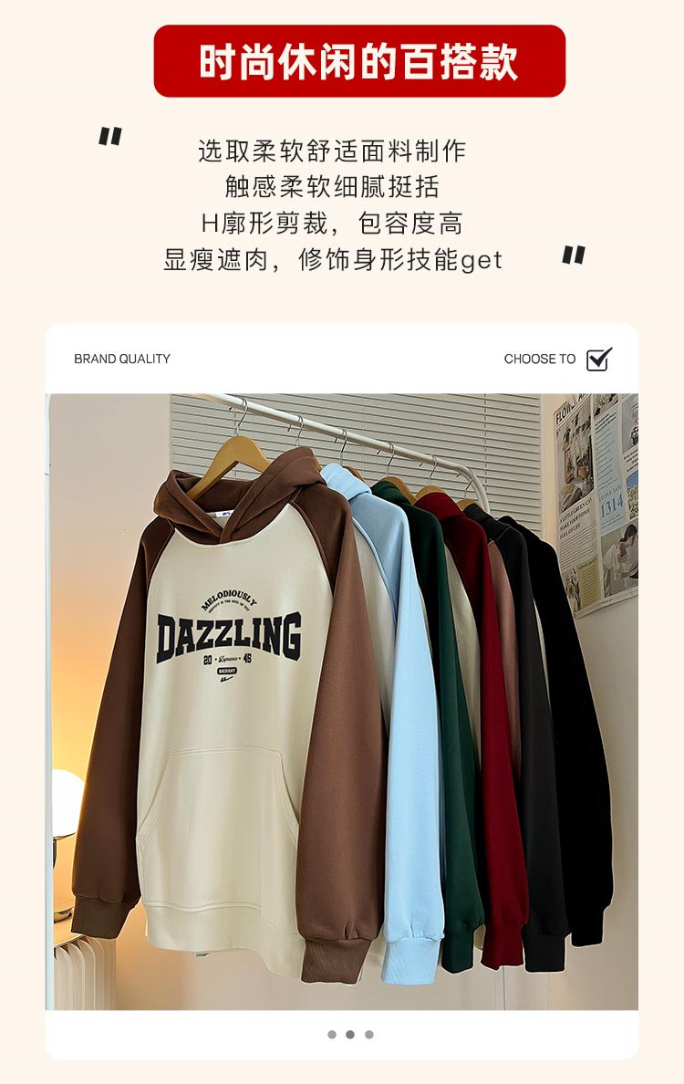 商品名称:【重磅棉】美式复古插肩连帽卫衣男女同款宽松慵懒风百搭情侣外套 772115
