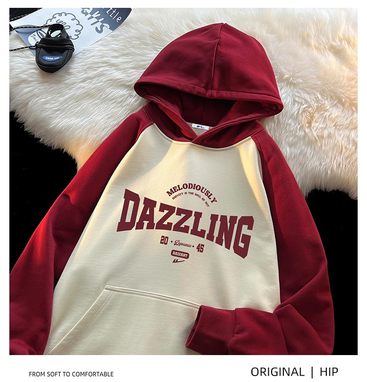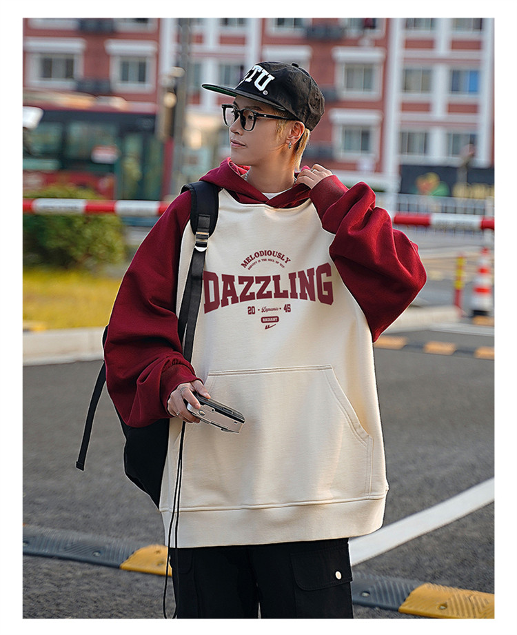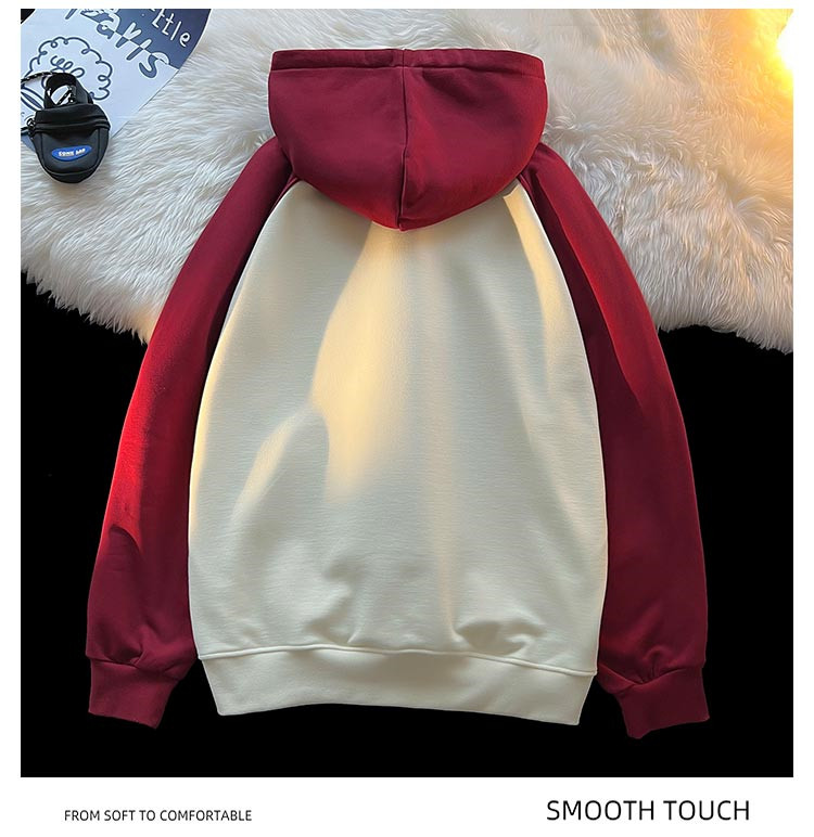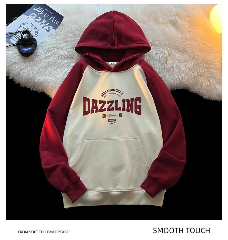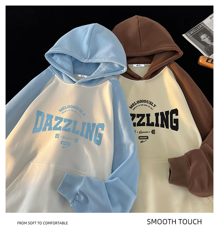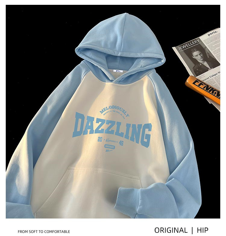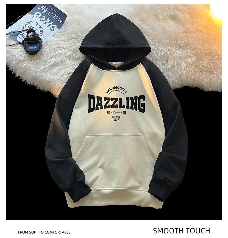 商品名称:【重磅棉】美式复古插肩连帽卫衣男女同款宽松慵懒风百搭情侣外套 772115