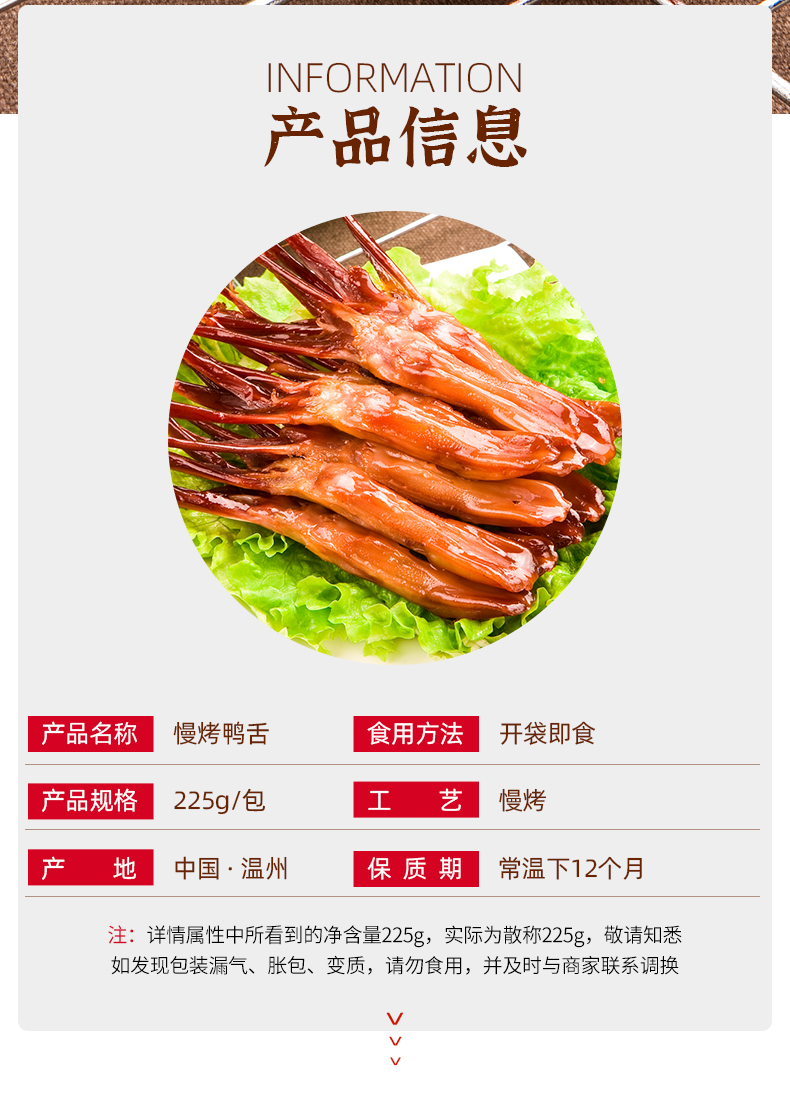 商品名称:SANCOR/爽康慢烤鸭舌225g