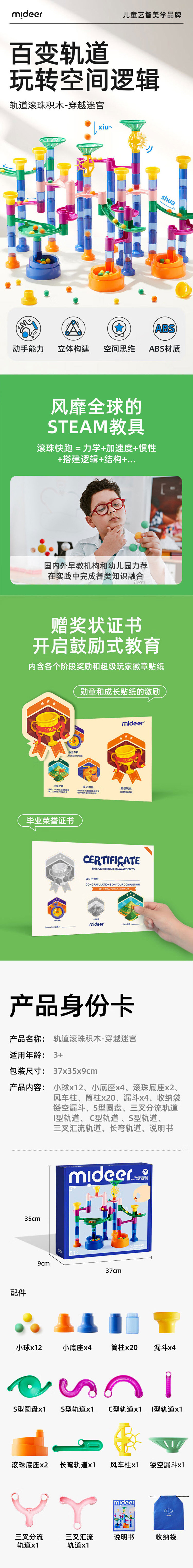 商品名称:Mideer/弥鹿穿越迷宫轨道滚珠积木MD2264