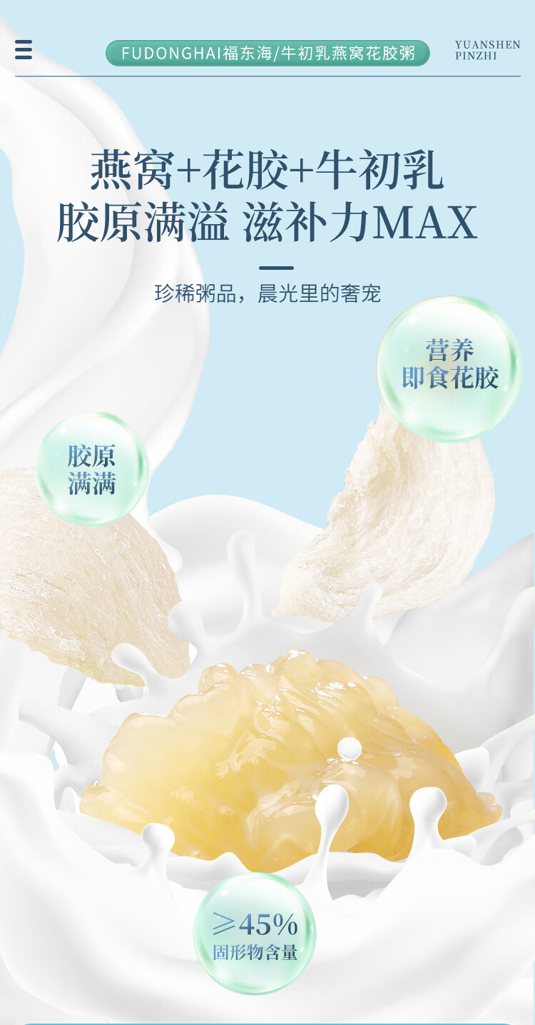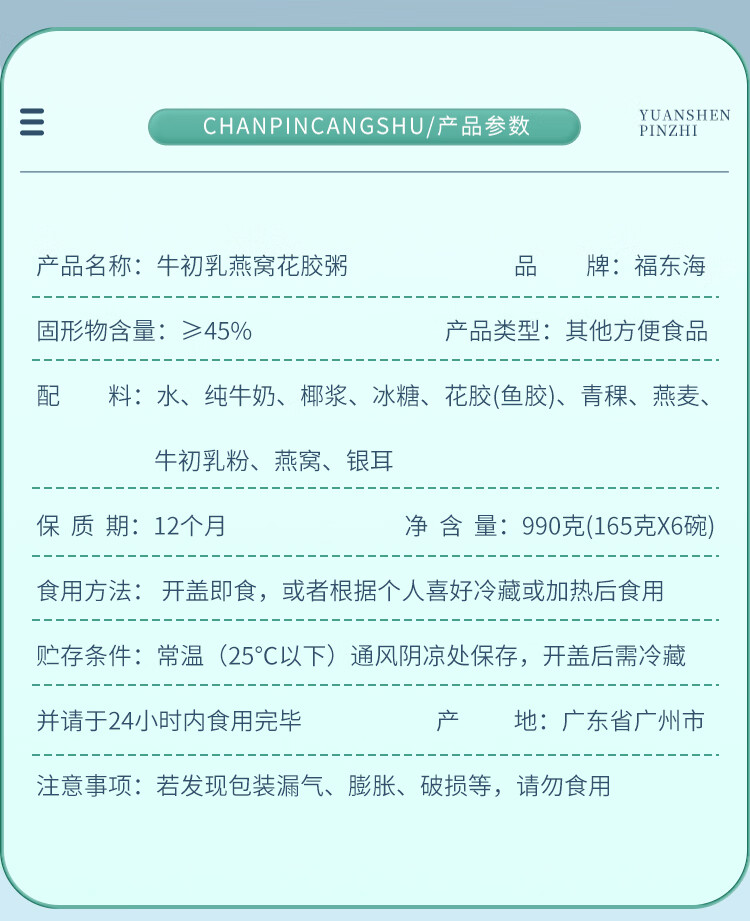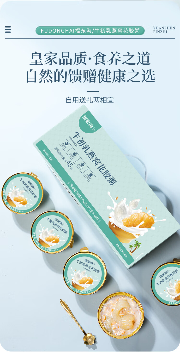商品名称:福东海牛初乳燕窝花胶粥990g