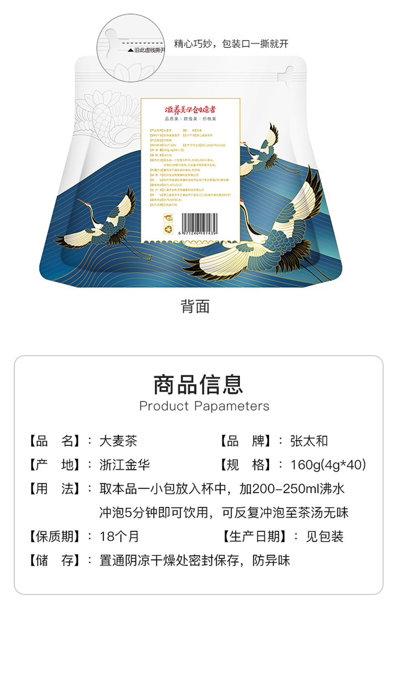商品名称:张太和大麦茶160g*3袋