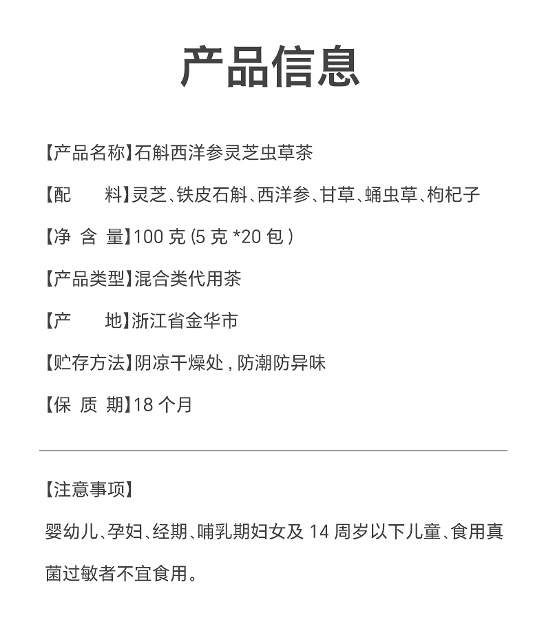 商品名称:张太和石斛西洋参灵芝虫草茶100g
