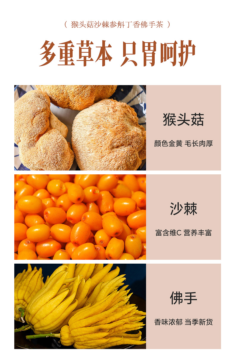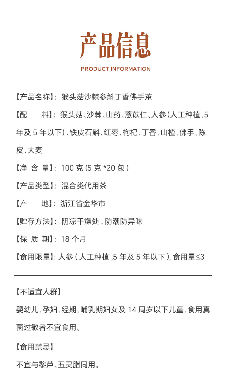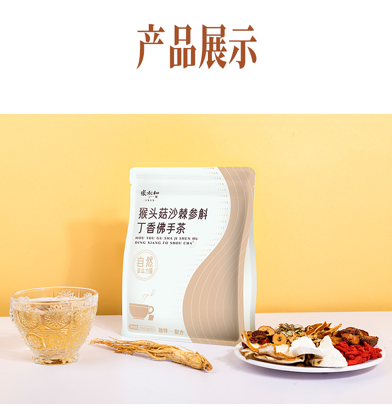 商品名称:张太和猴头菇沙棘参斛丁香佛手茶100g*2袋