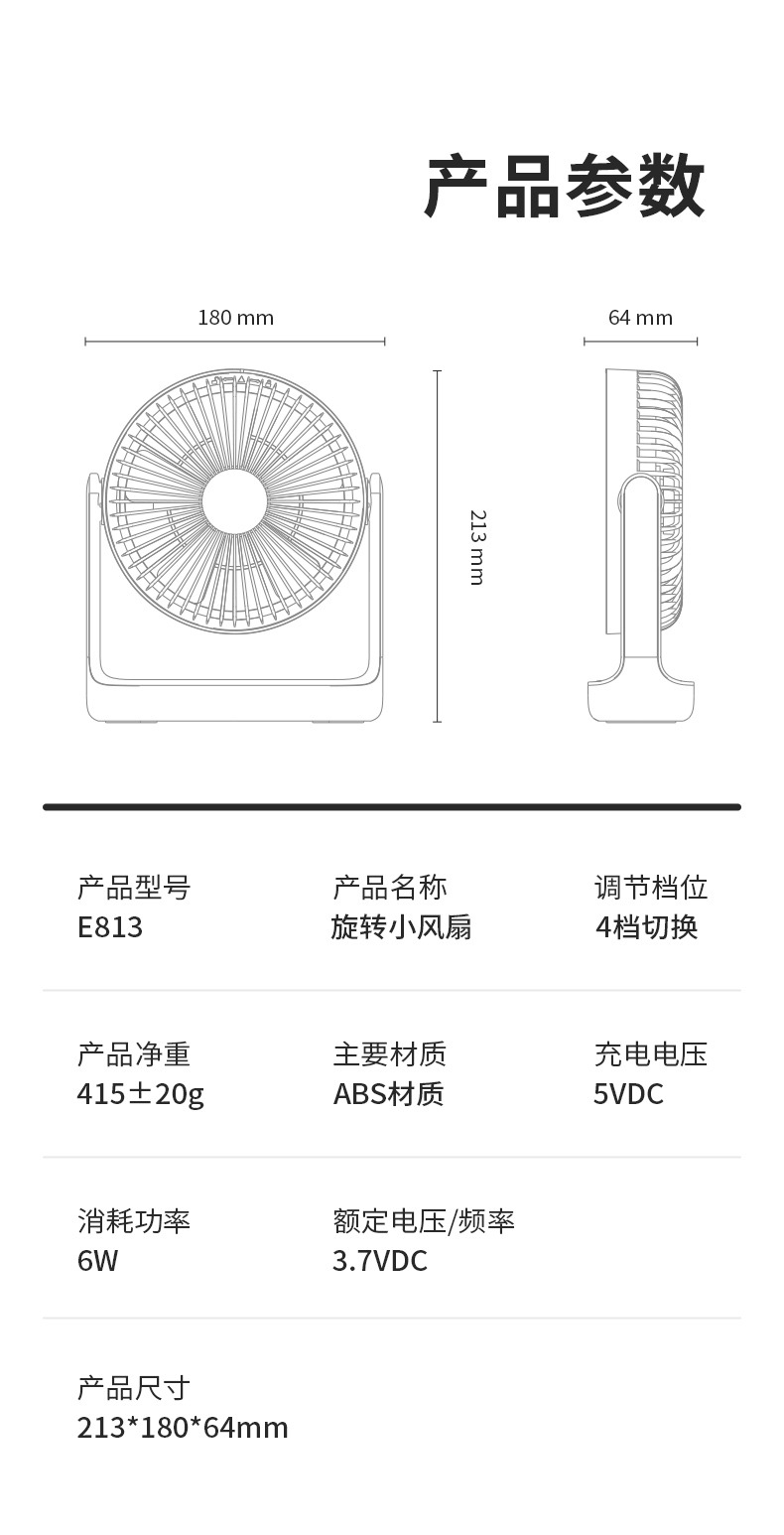 商品名称:edon/爱登桌面旋风小风扇E813