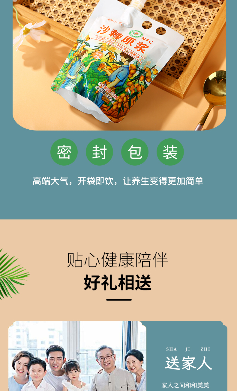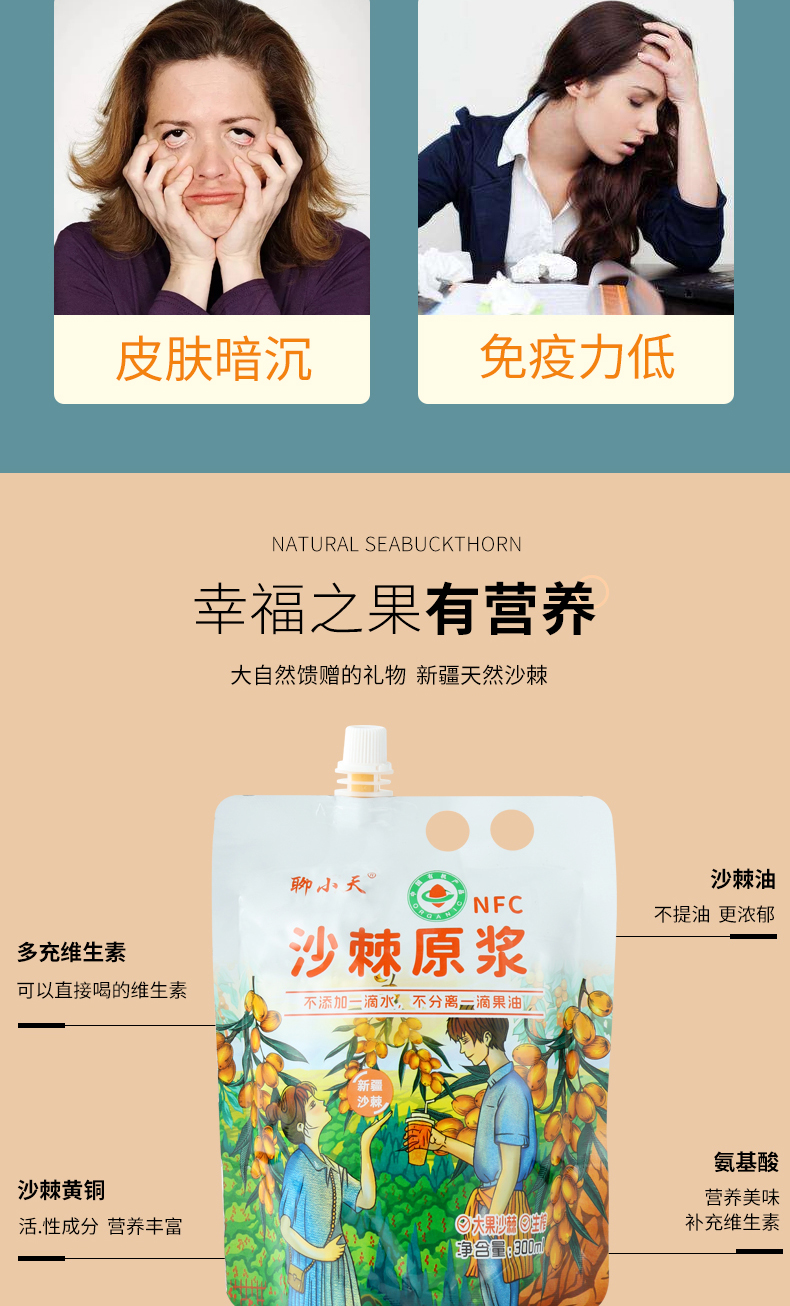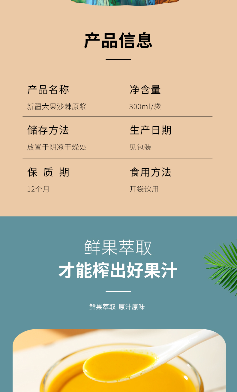 商品名称:聊小天新疆大果有机沙棘原浆300ml*6袋