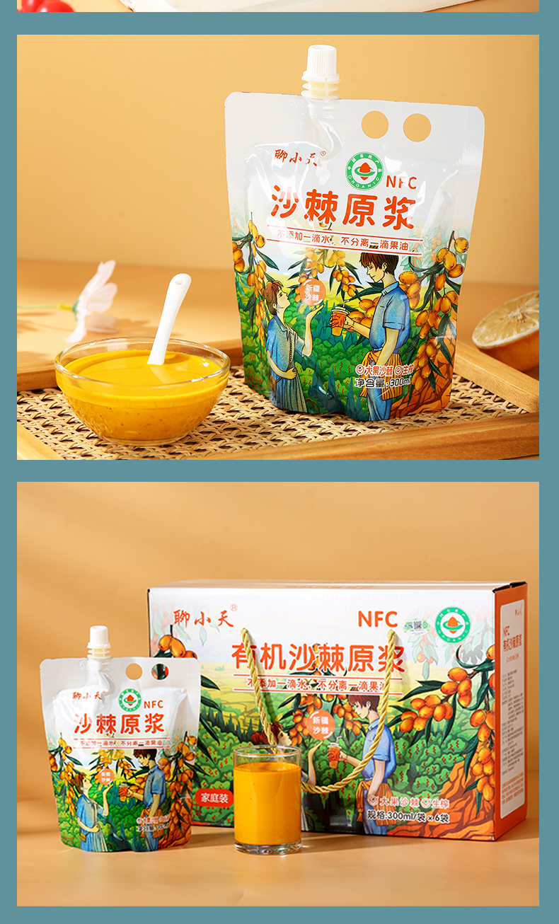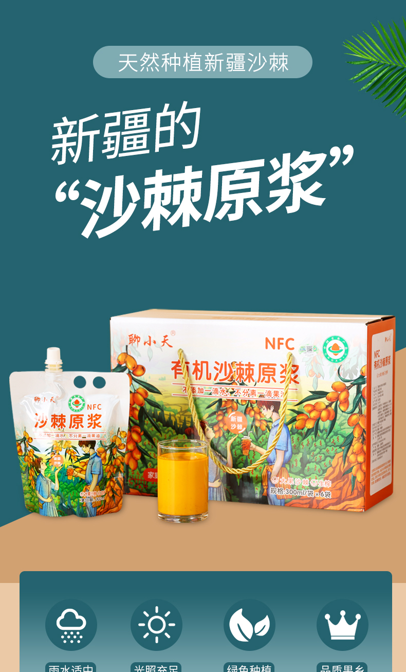 聊小天新疆大果有机沙棘原浆300ml*6袋