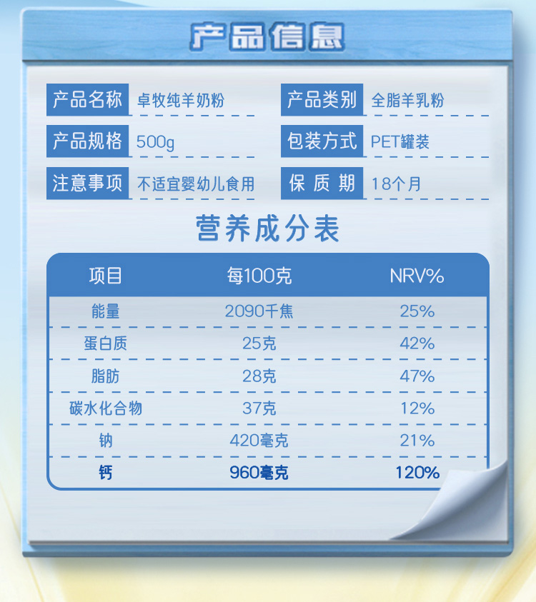 商品名称:JOMILK/卓牧纯羊奶粉礼盒装500g*2罐