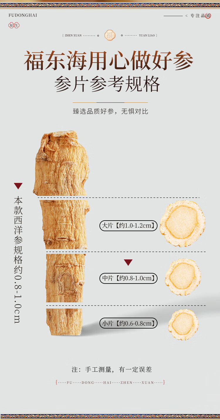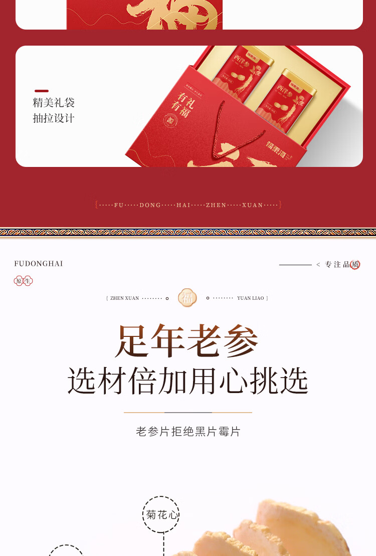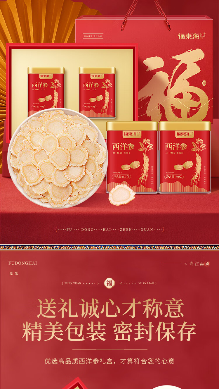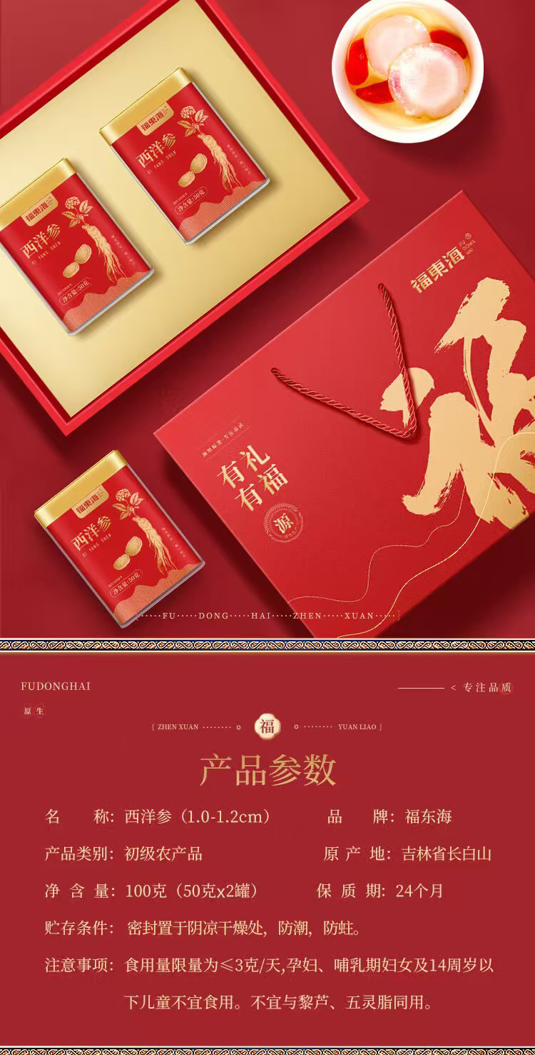 商品名称:福东海西洋参片礼盒1.0-1.2cm薄片100g 两款包装随机不接受指定