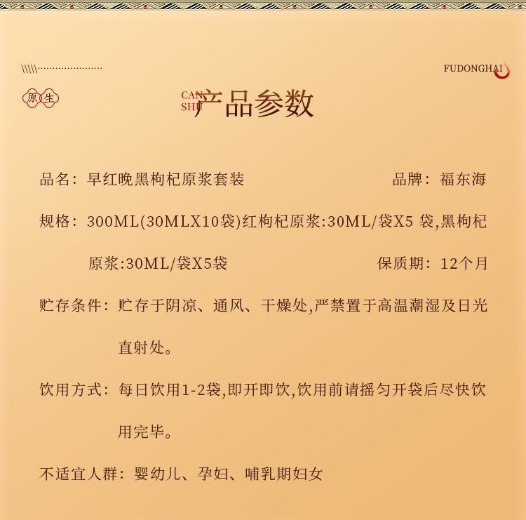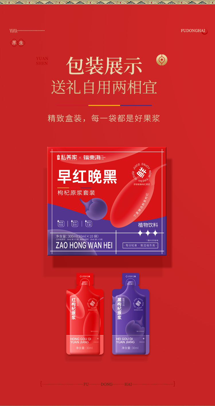 商品名称:福东海早红晚黑枸杞原浆套装300ml