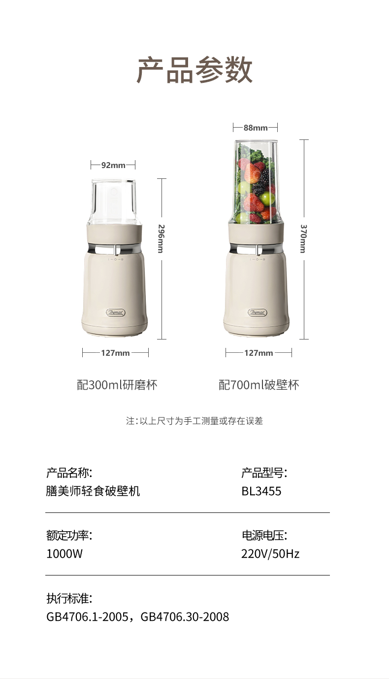 商品名称:【顺丰配送】Thimax/膳美师700毫升轻食破壁机BL3455