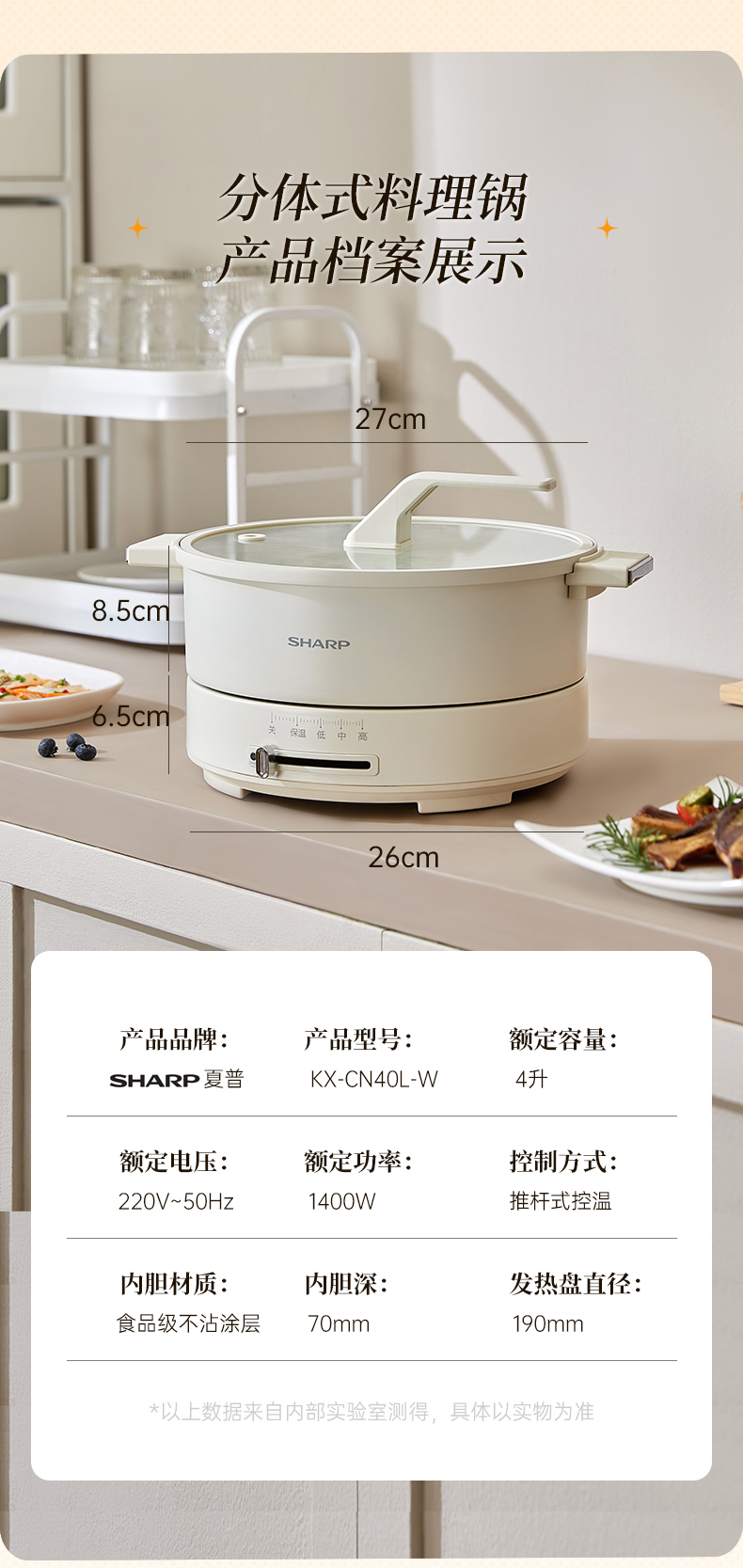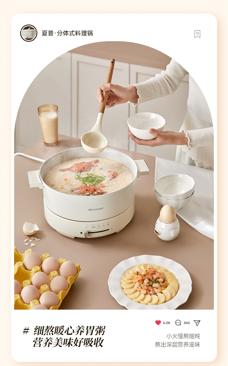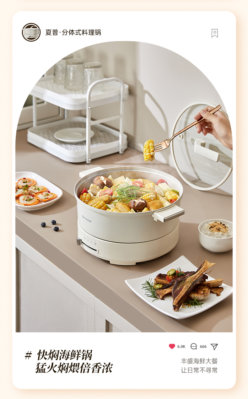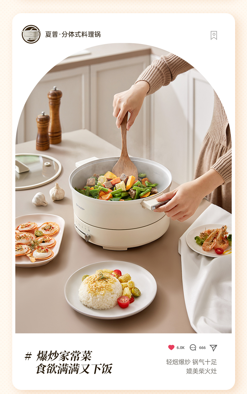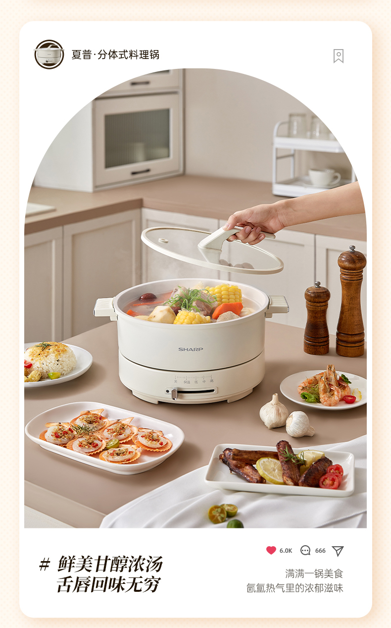 商品名称:SHARP/夏普4升多功能电火锅KX-CN40L-W
