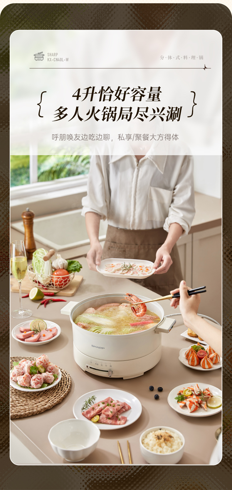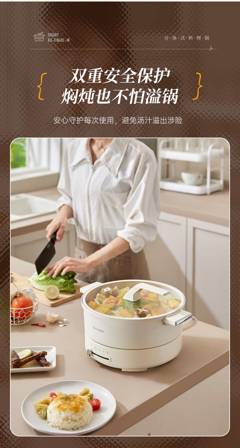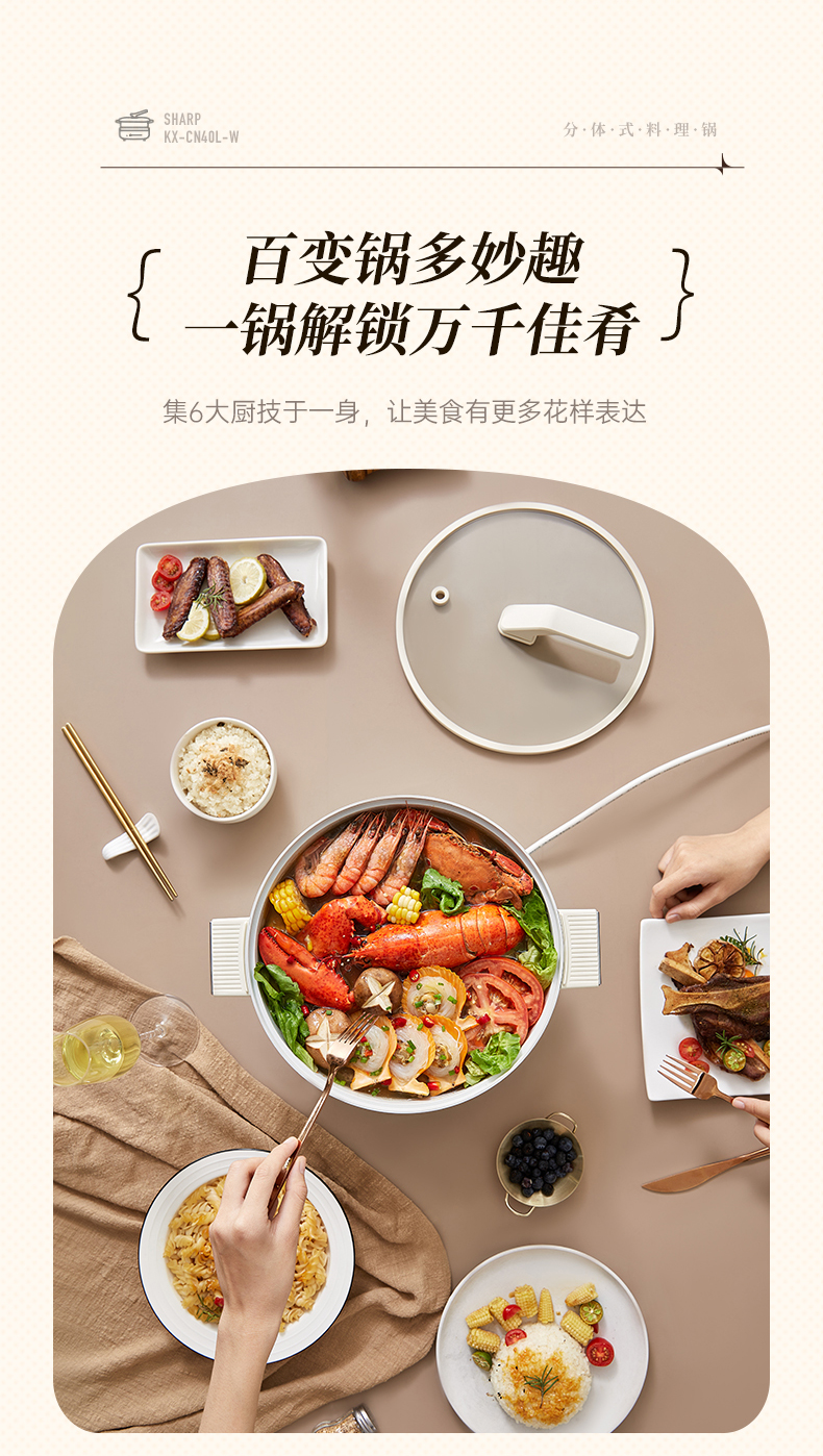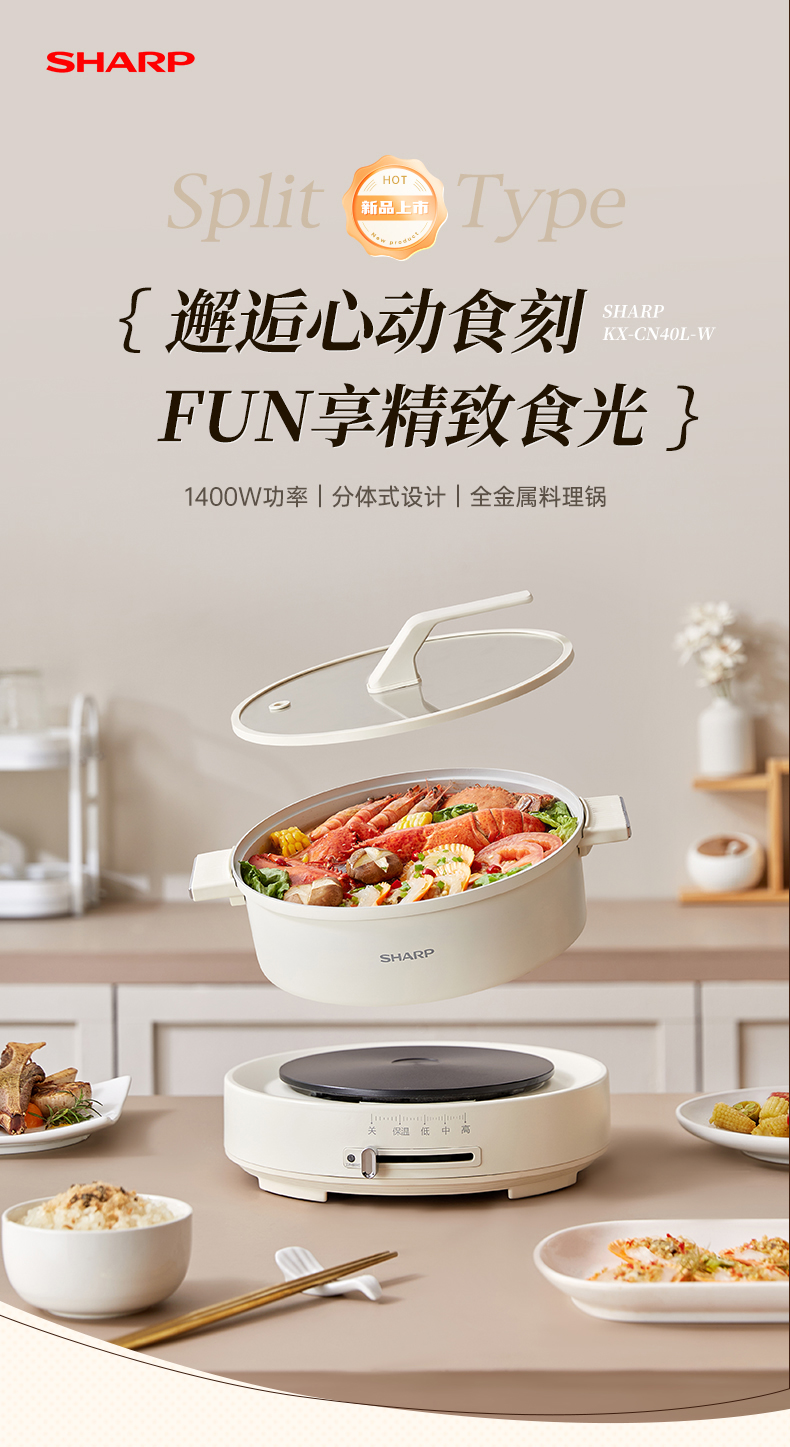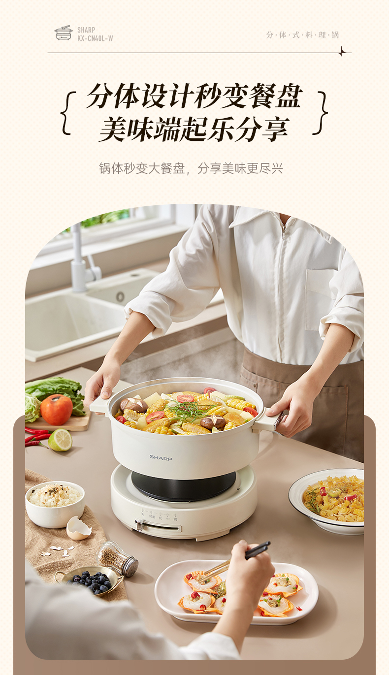SHARP/夏普4升多功能电火锅KX-CN40L-W
