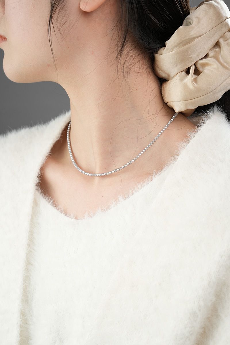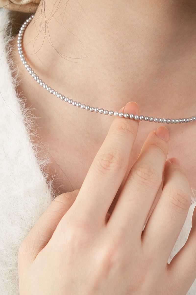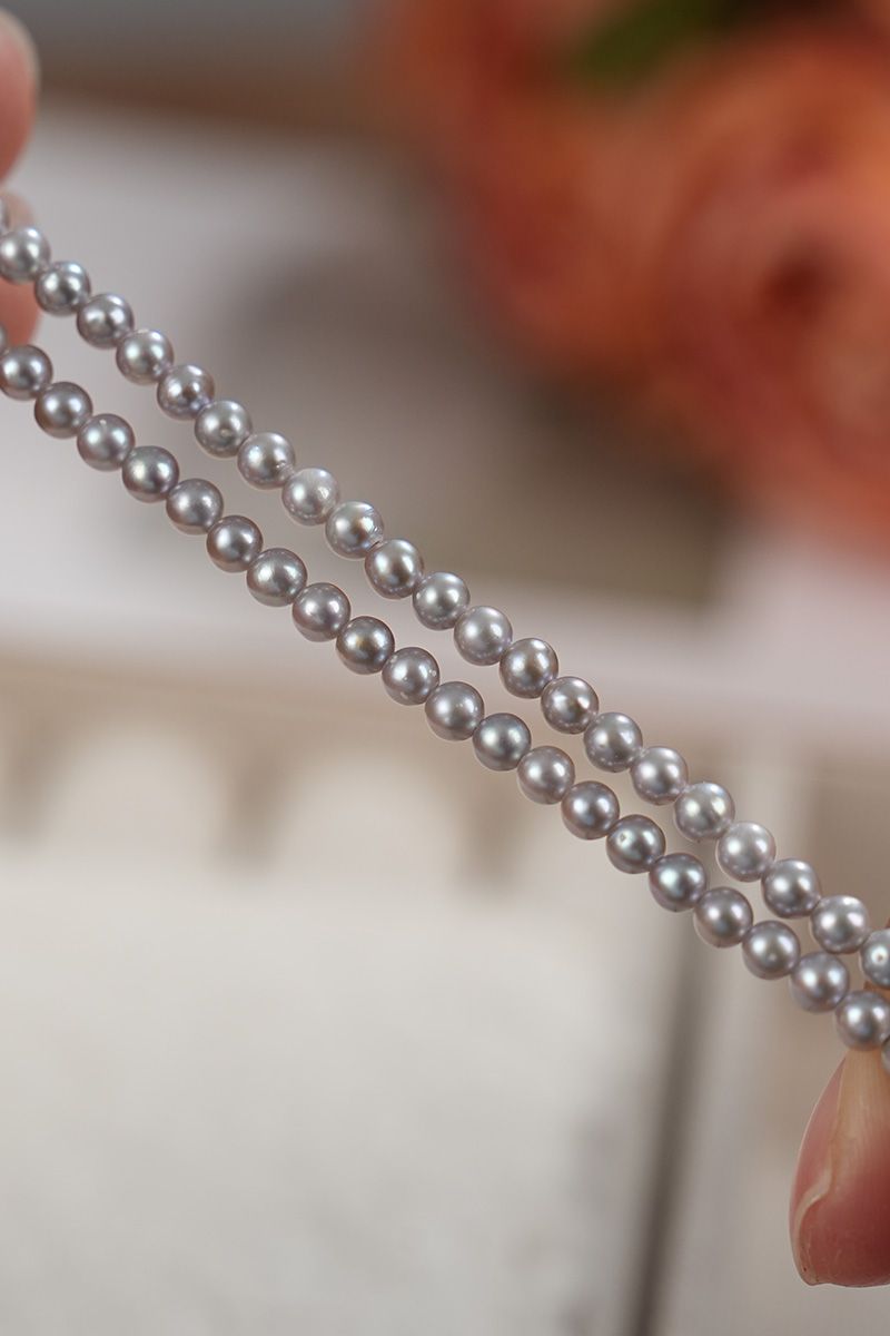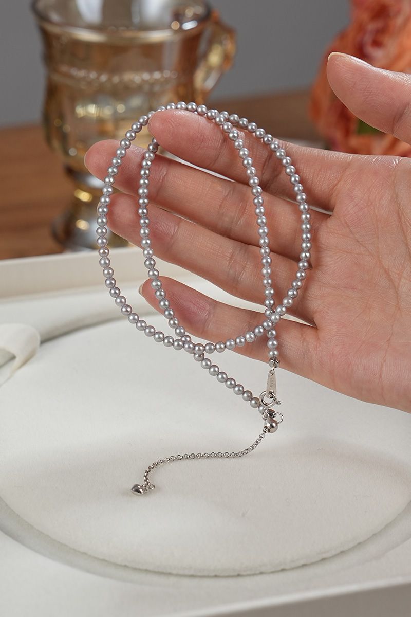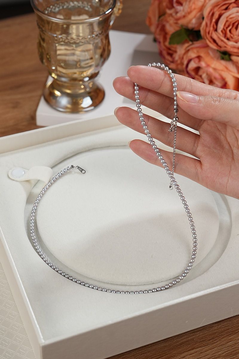 【真科研大证】淡水有核3.5-4.5mm铂金灰色近圆珍珠项链925银