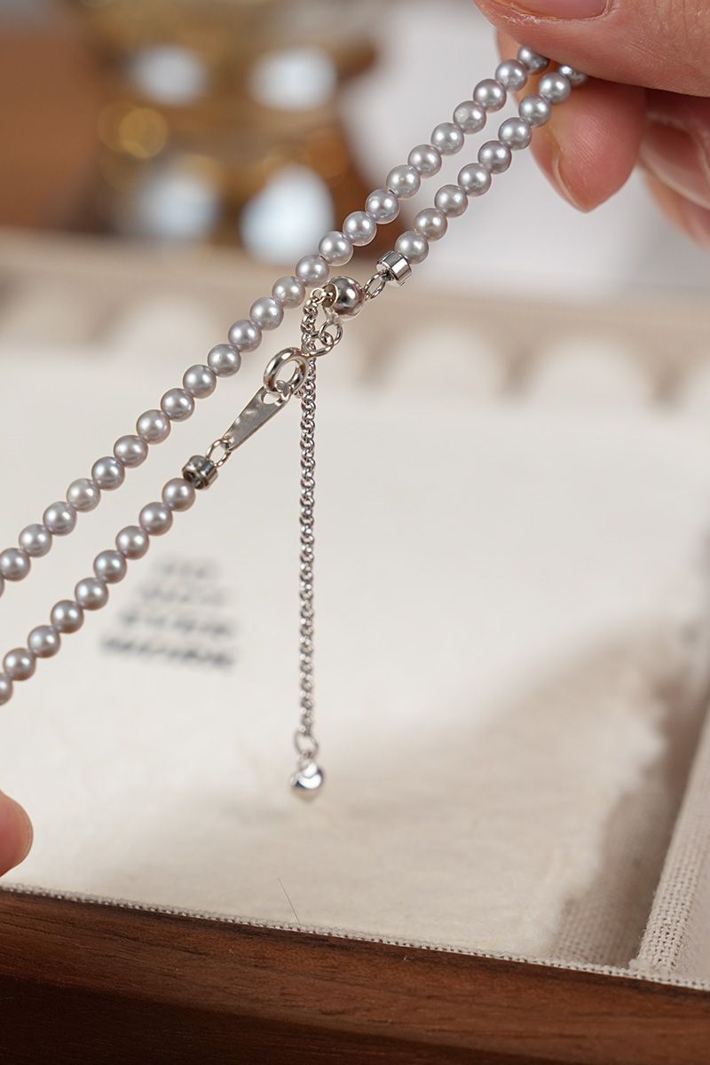 商品名称:【真科研大证】淡水有核3.5-4.5mm铂金灰色近圆珍珠项链925银