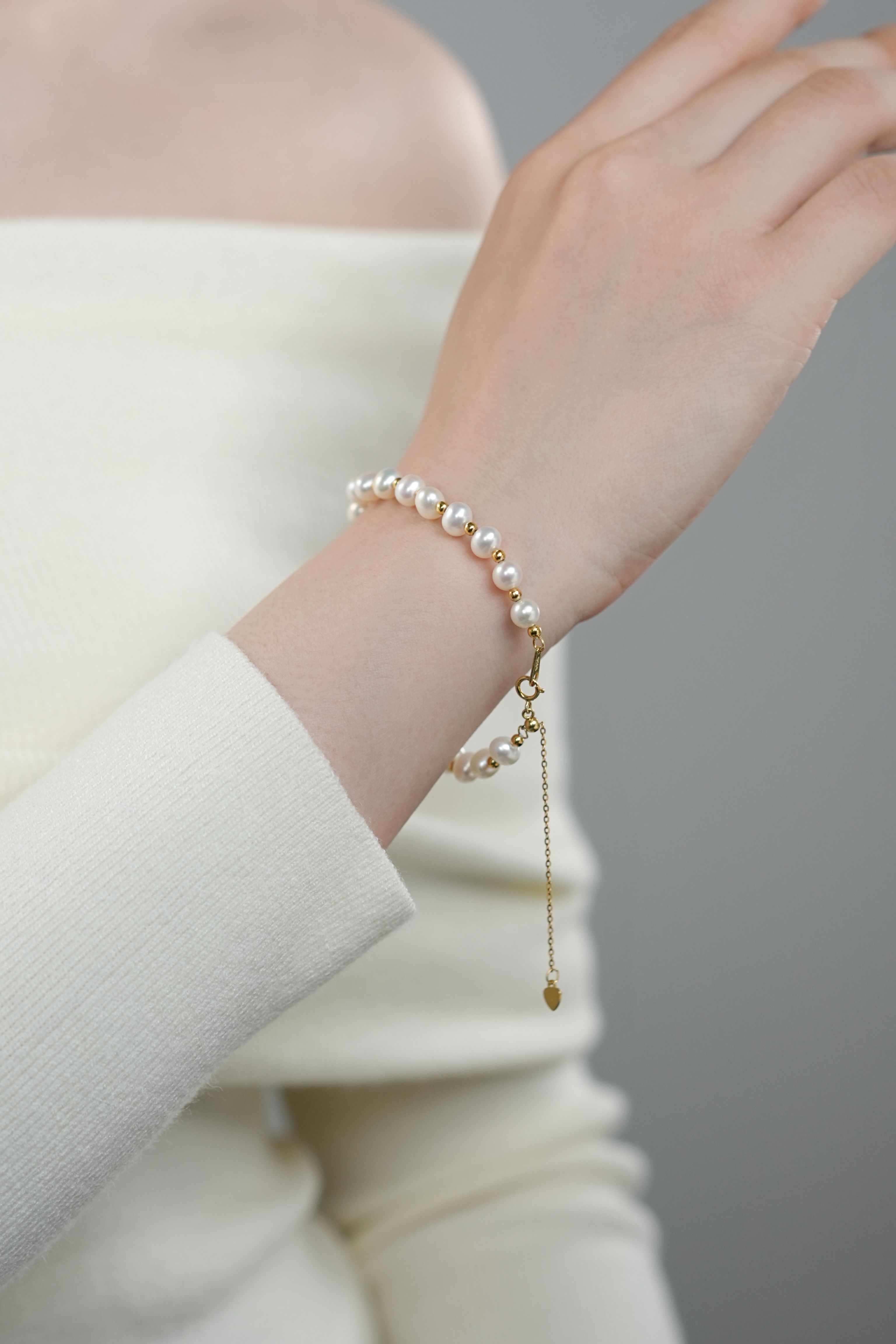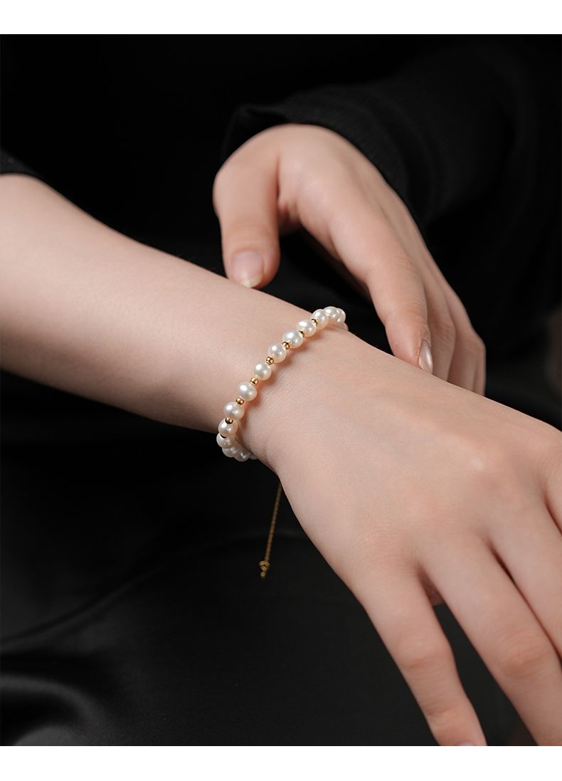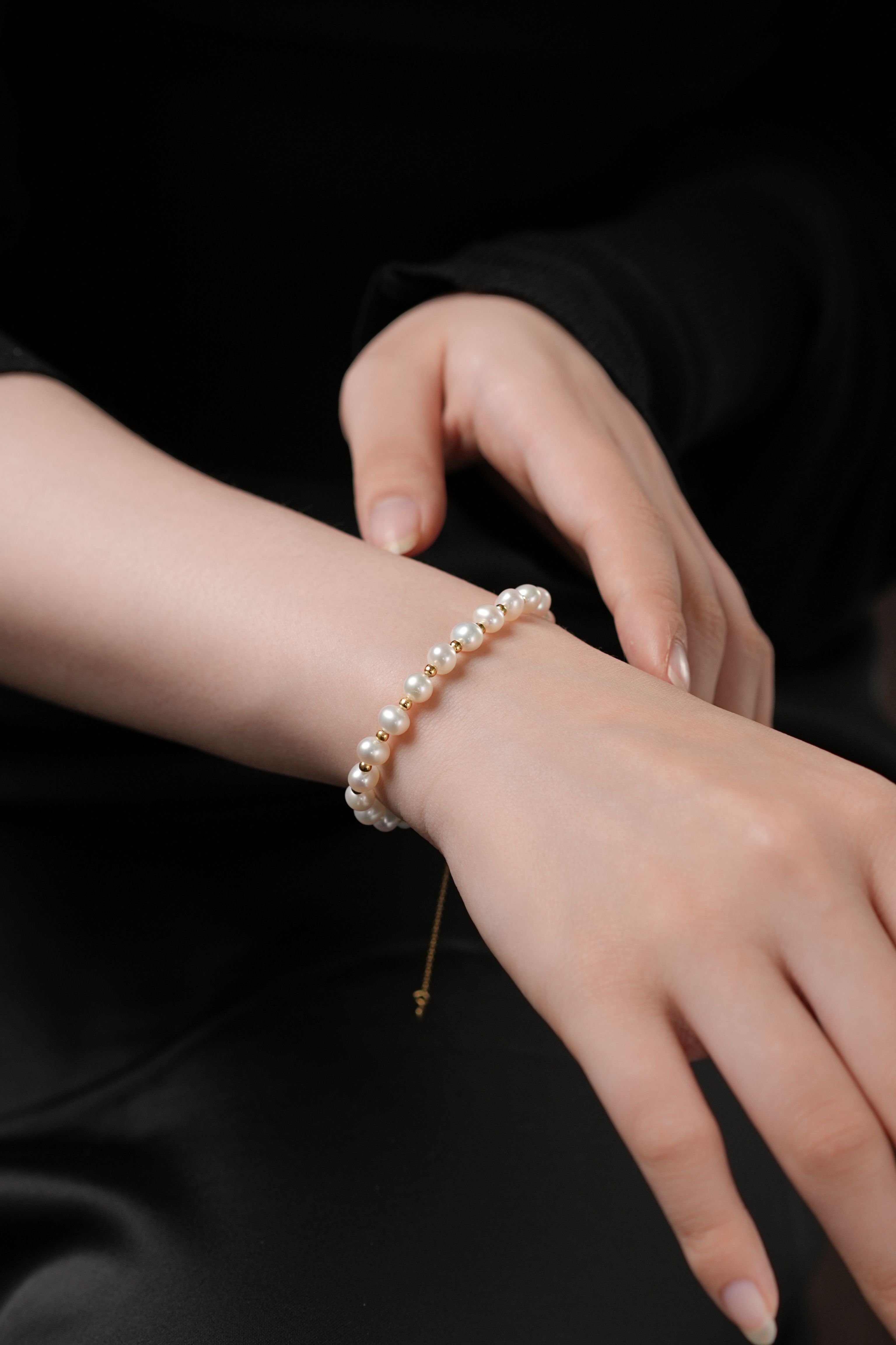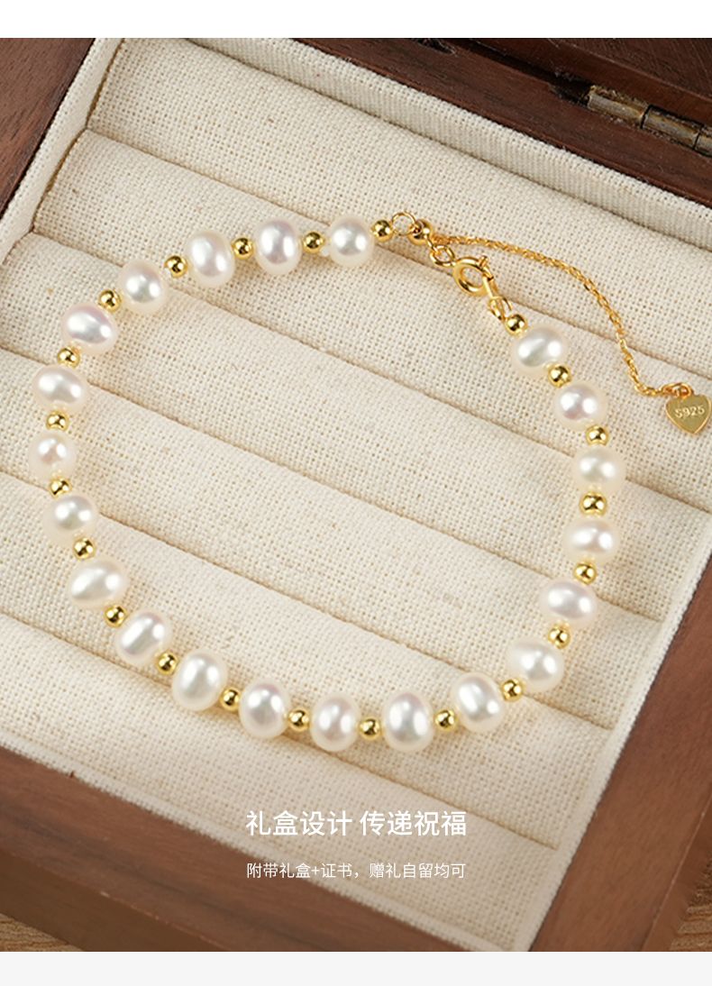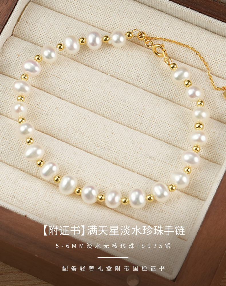【附证书】满天星5-6淡水珍珠925银金珠手链