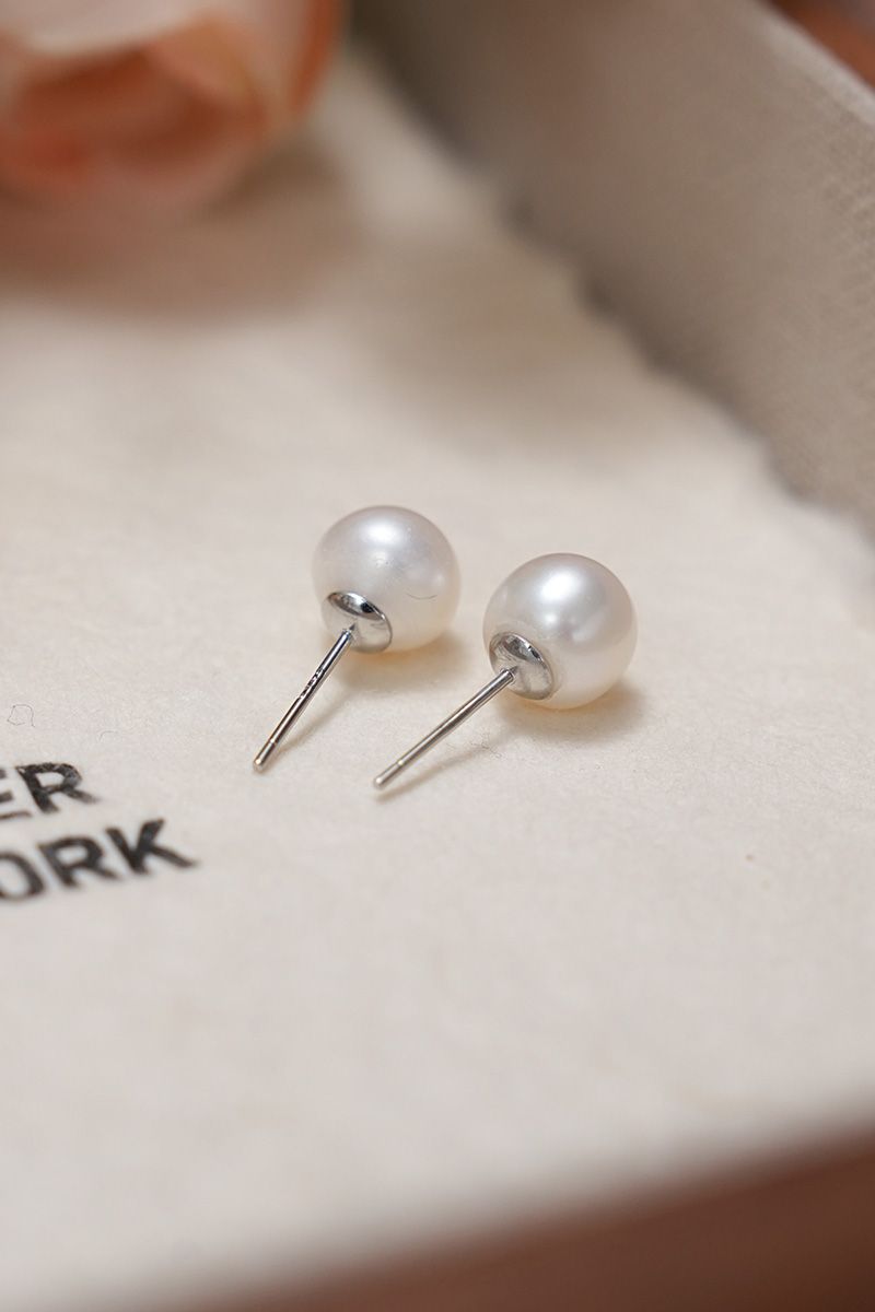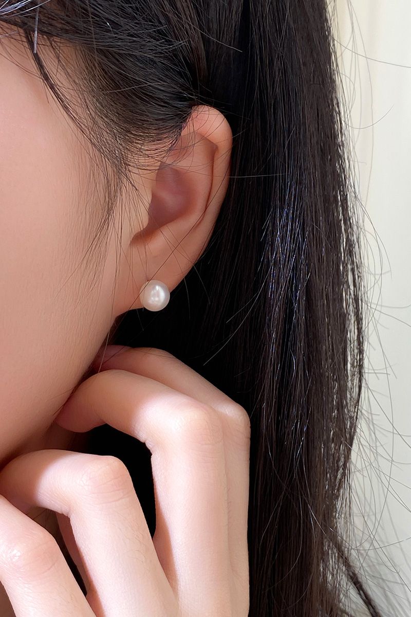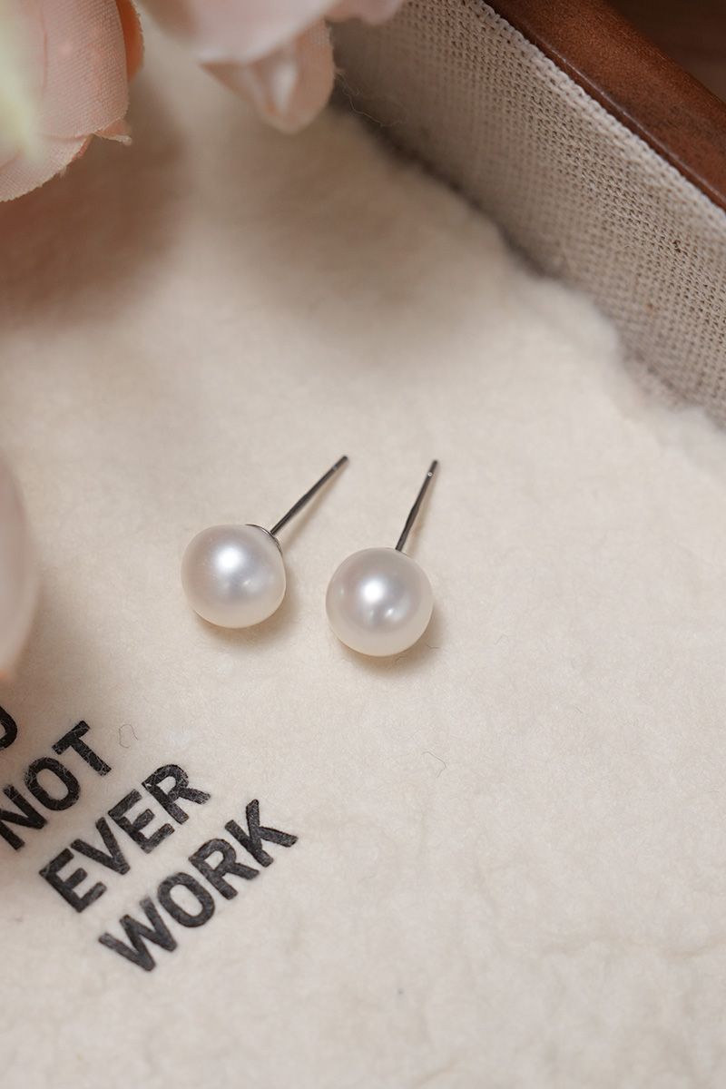 商品名称:【附证书】天然淡水7-8mm白珠耳钉(偏水滴形)