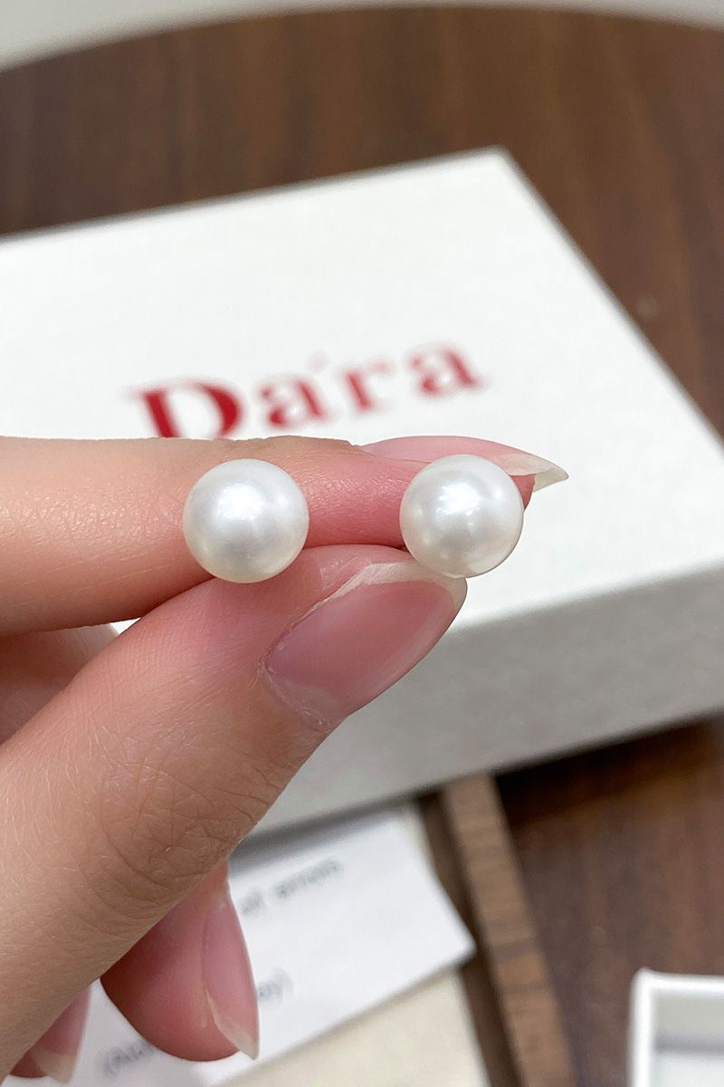 【附证书】天然淡水7-8mm白珠耳钉(偏水滴形)