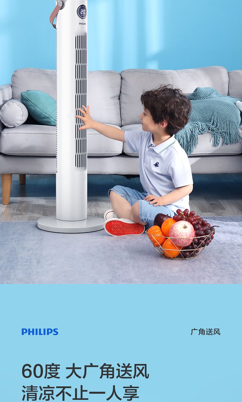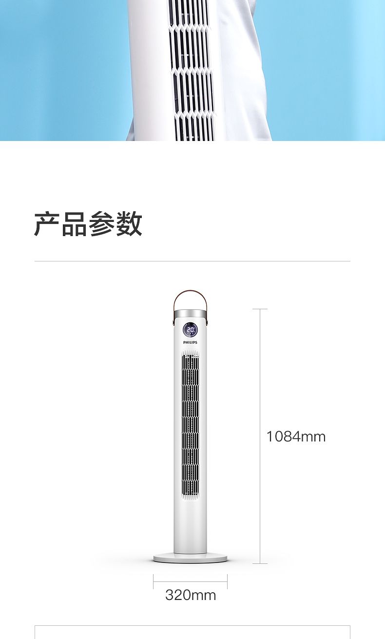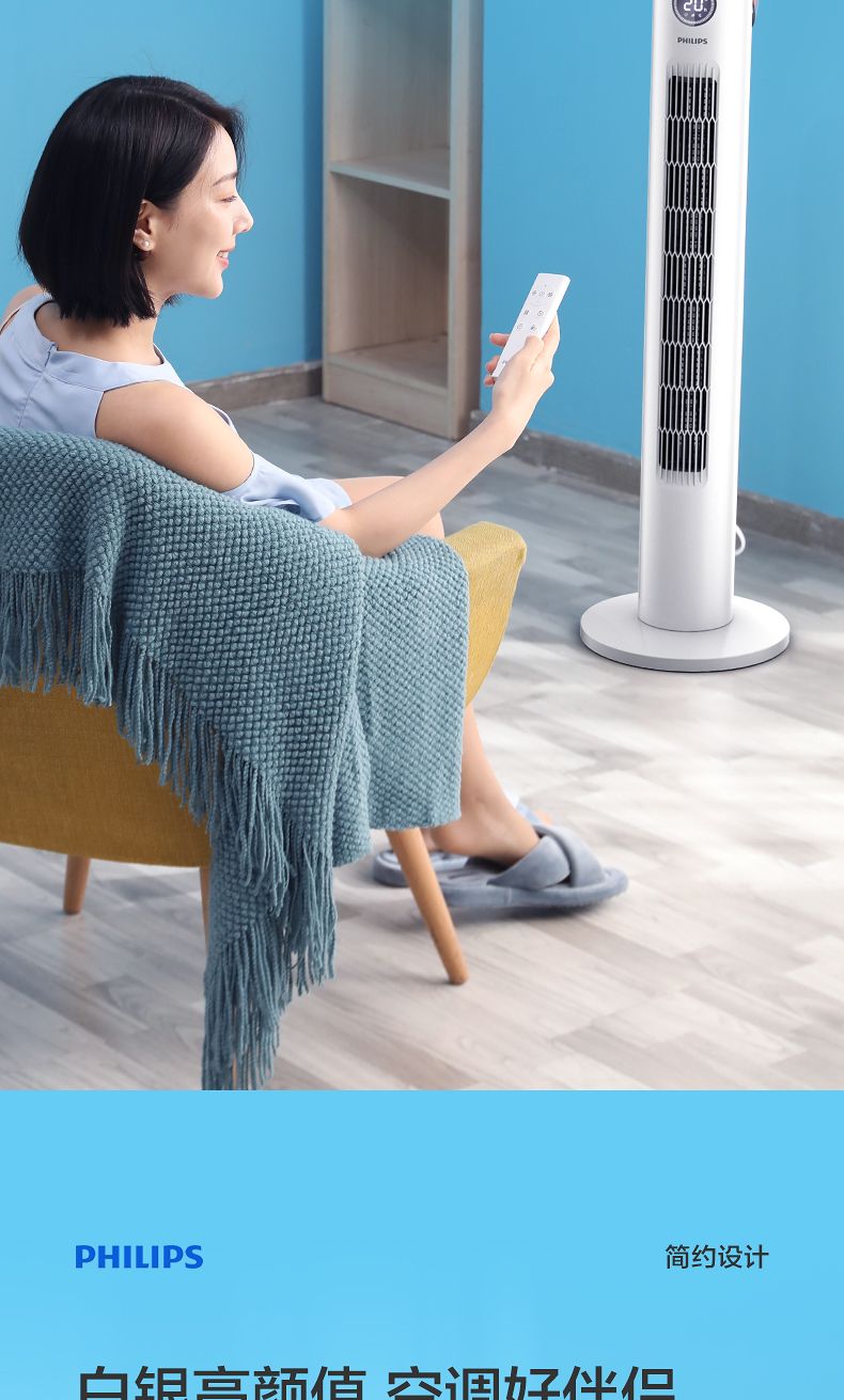 商品名称:飞利浦塔扇ACR2244TF 节能轻音无叶风扇落地式家用立式大风量电风扇白色