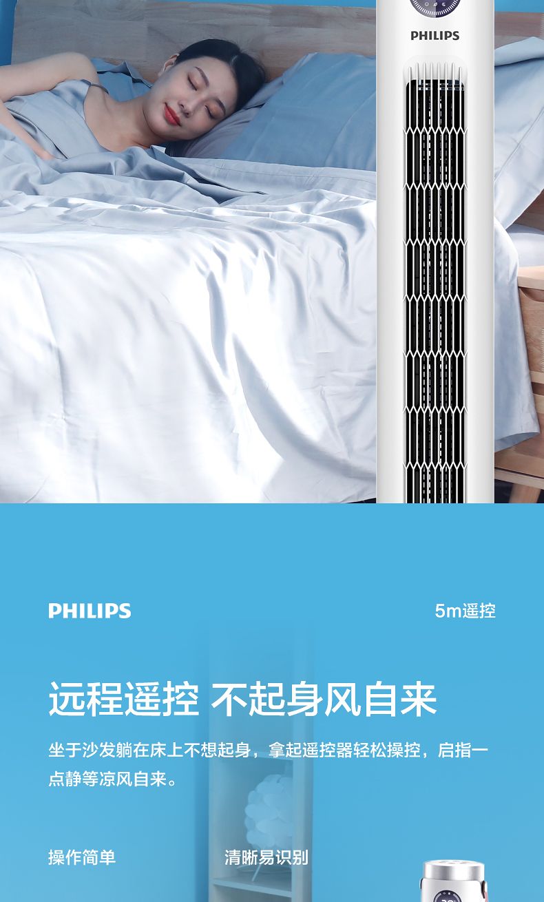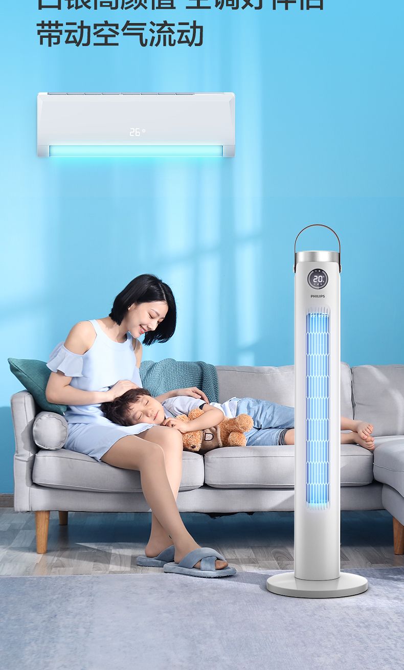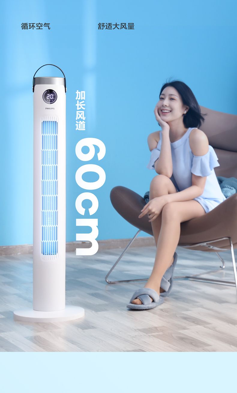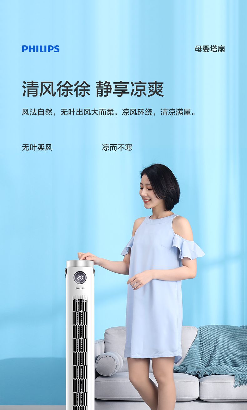 飞利浦塔扇ACR2244TF 节能轻音无叶风扇落地式家用立式大风量电风扇白色
