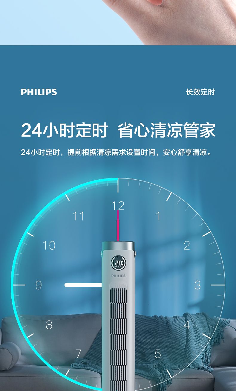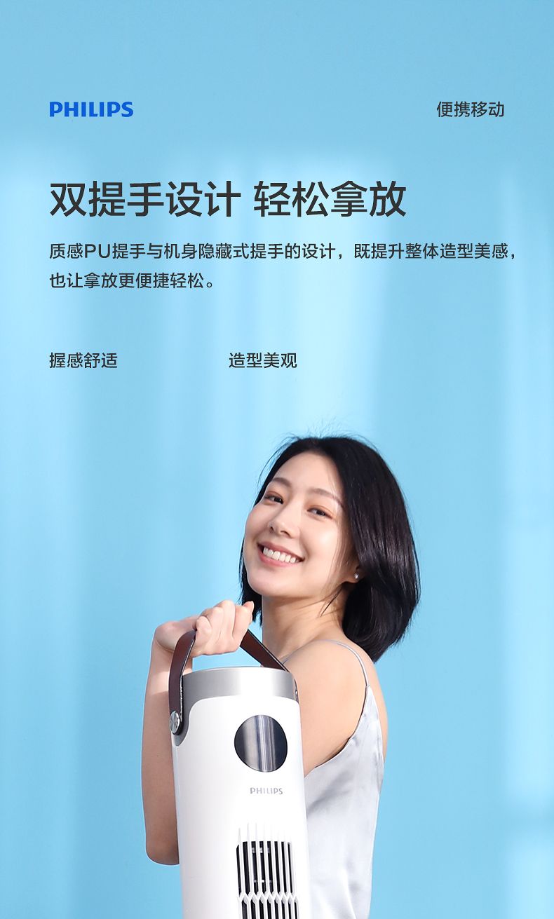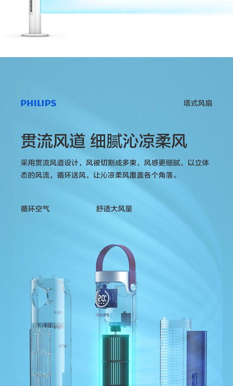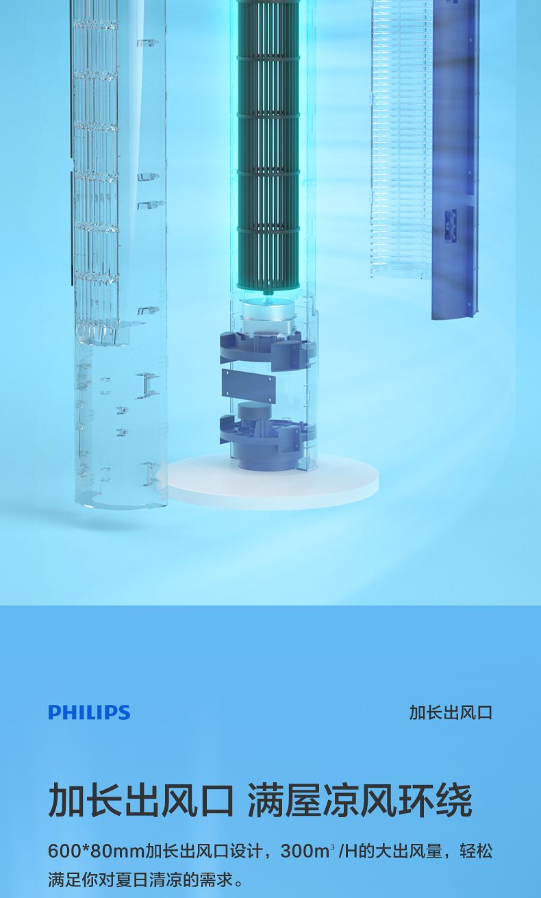 飞利浦塔扇ACR2244TF 节能轻音无叶风扇落地式家用立式大风量电风扇白色