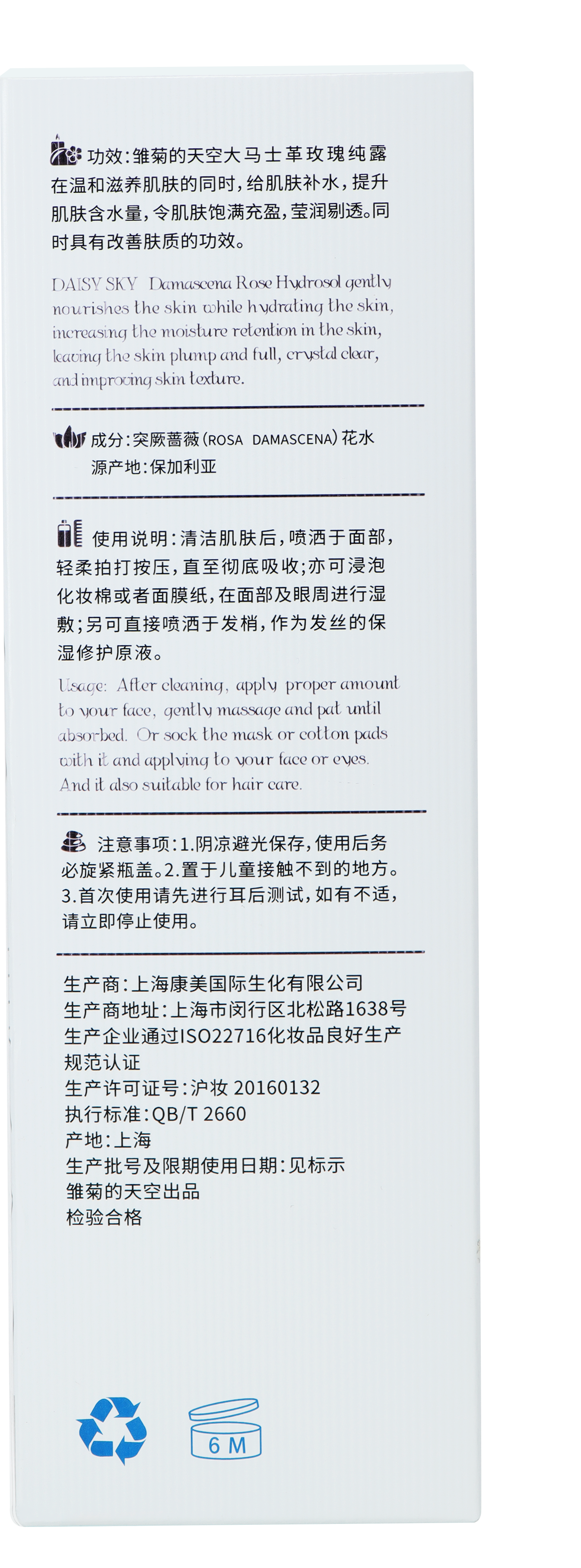 商品名称:雏菊的天空 大马士革玫瑰纯露 318ml