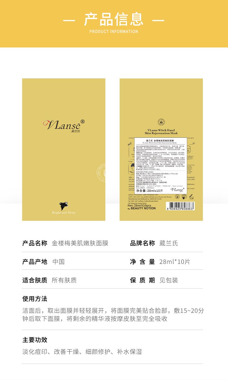 商品名称:VLanse/葳兰氏 金缕梅美肌嫩肤面膜 28ml*10片