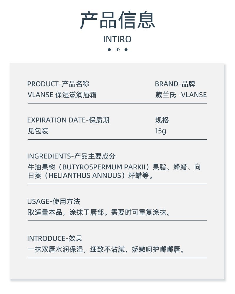 商品名称:VLanse/葳兰氏 保湿滋润唇霜15g