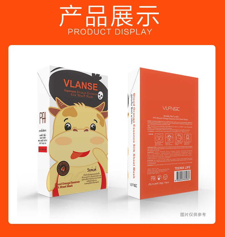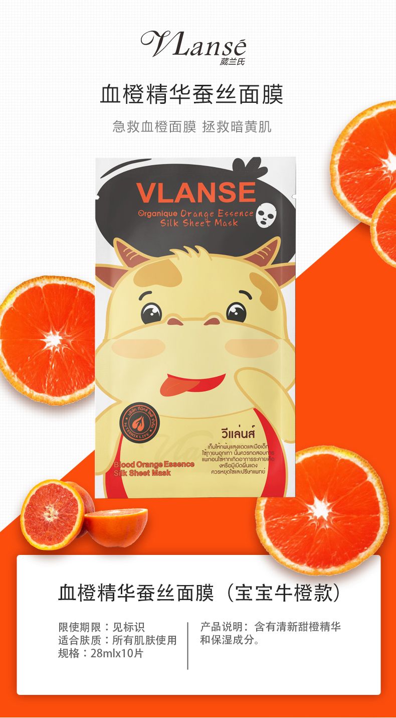 商品名称:Vlanse/葳兰氏 PFH血橙精华蚕丝面膜28g*10片