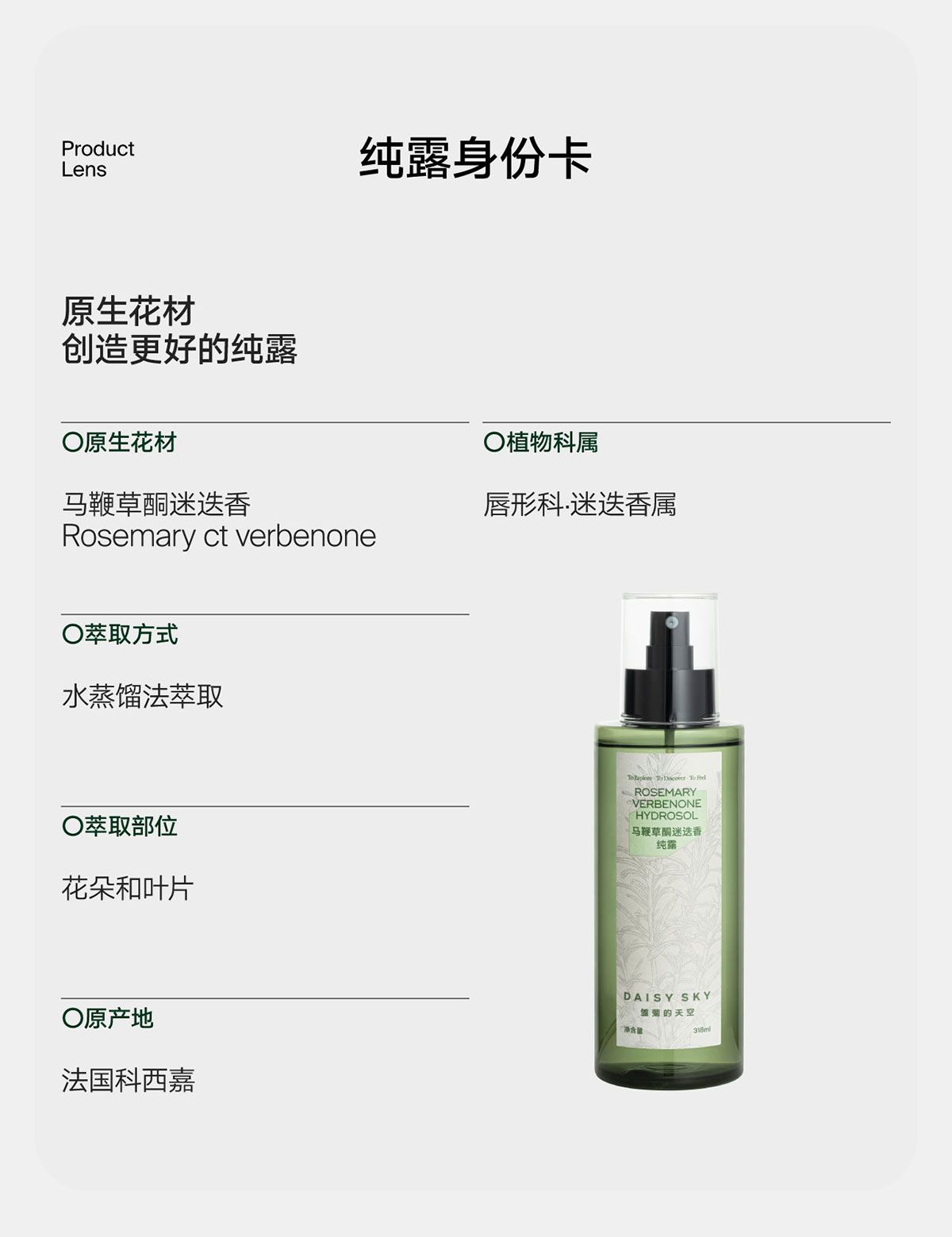 商品名称:雏菊的天空 马鞭草迷迭香纯露 318ml