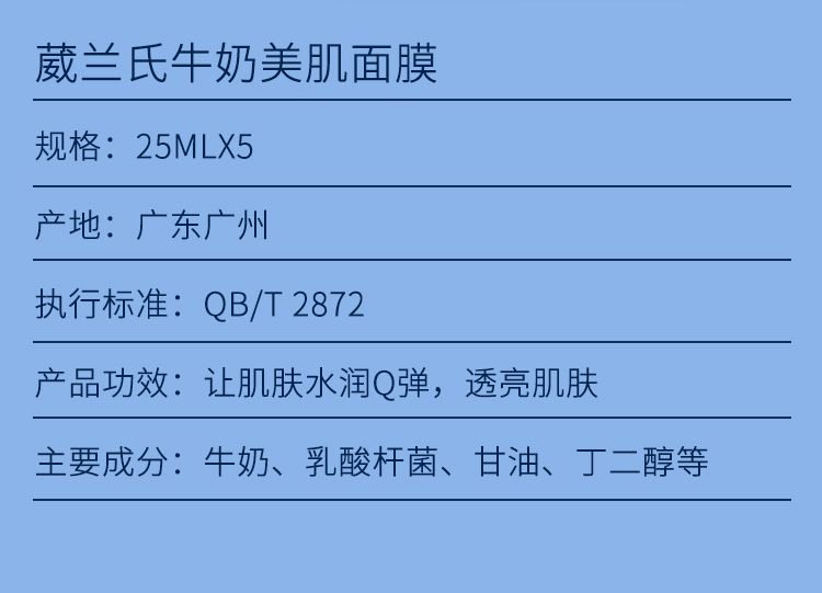 商品名称:VLanse/葳兰氏 牛奶美肌面膜25ml*10片