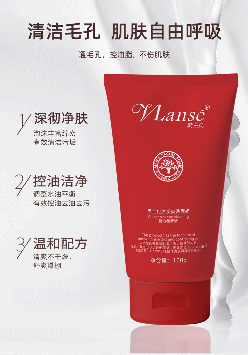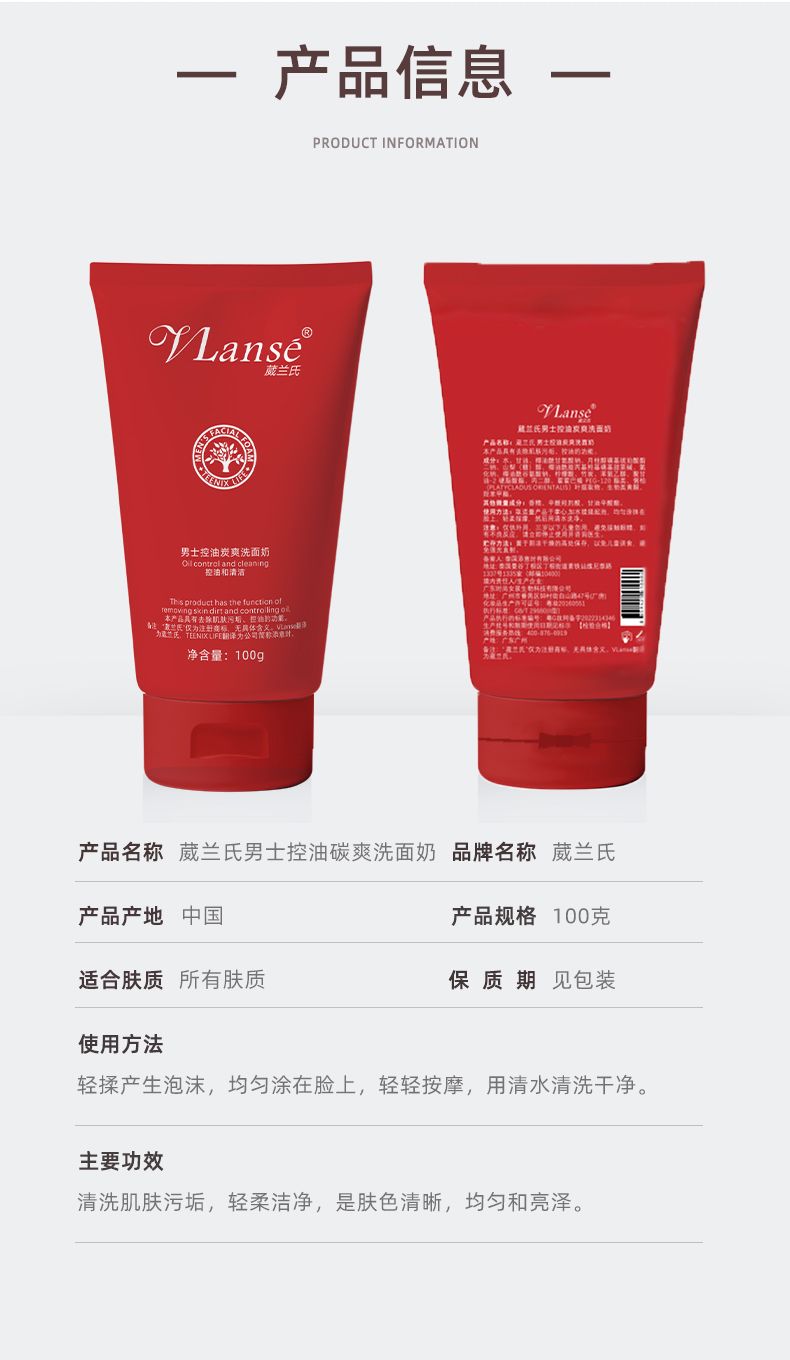 商品名称:VLanse/葳兰氏 男士控油炭爽洗面奶 100ml