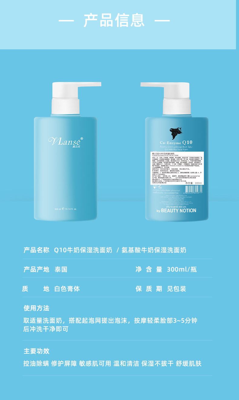 商品名称:Vlanse/葳兰氏 Q10牛奶保湿洗面奶(大牛)300ml