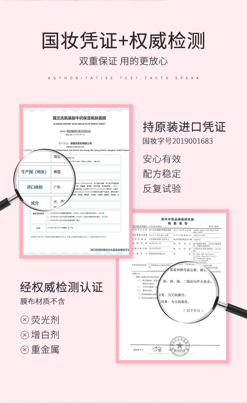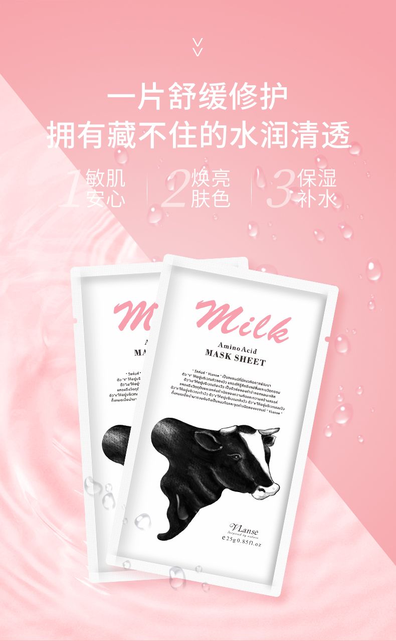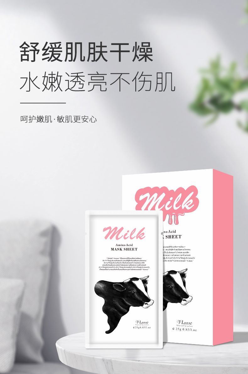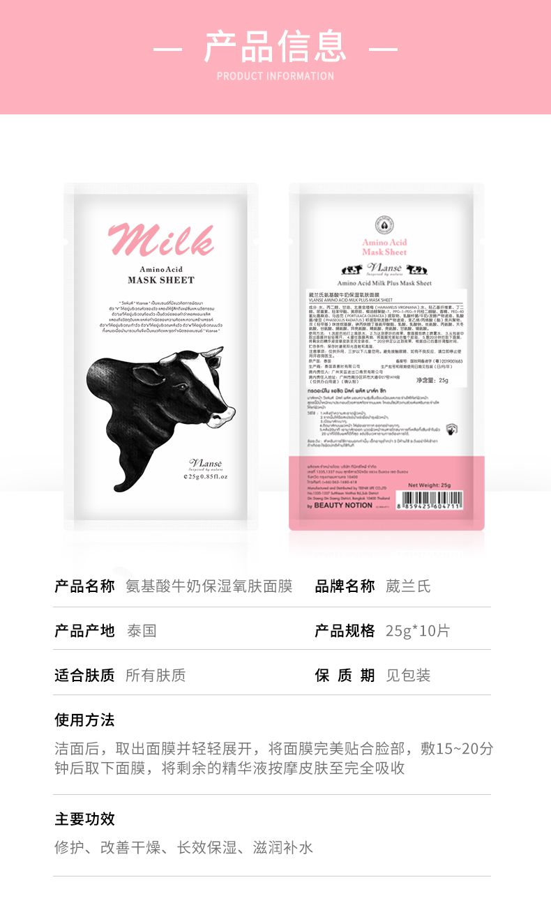 商品名称:Vlanse/葳兰氏 氨基酸牛奶保湿氧肤面膜 10片装(大牛)25g*10片