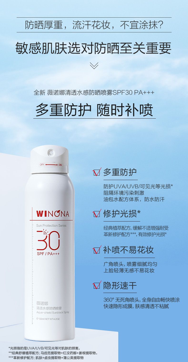 商品名称:Winqan/薇诺娜 清透水感防晒喷雾 120ml